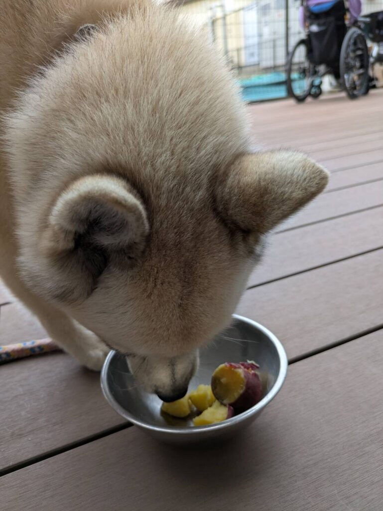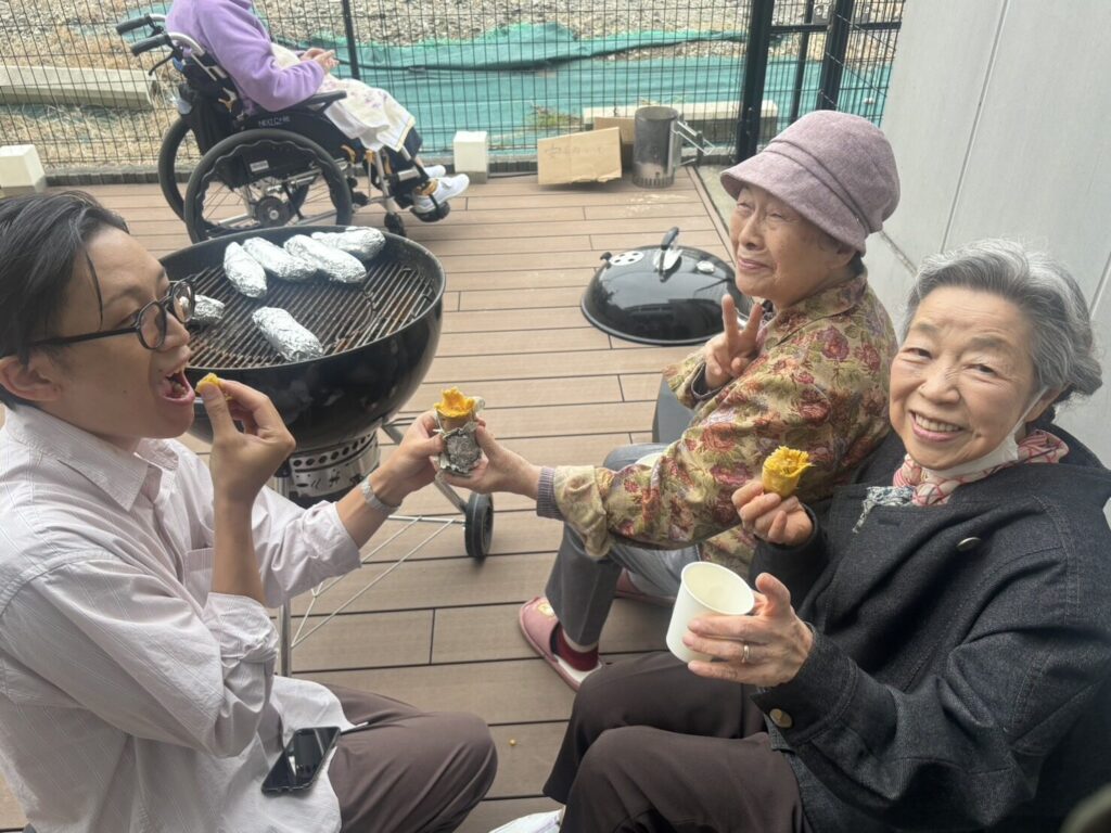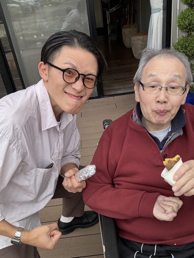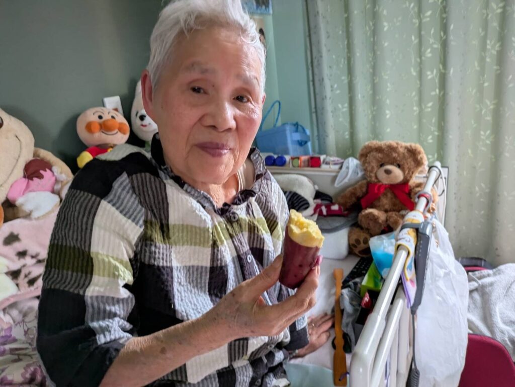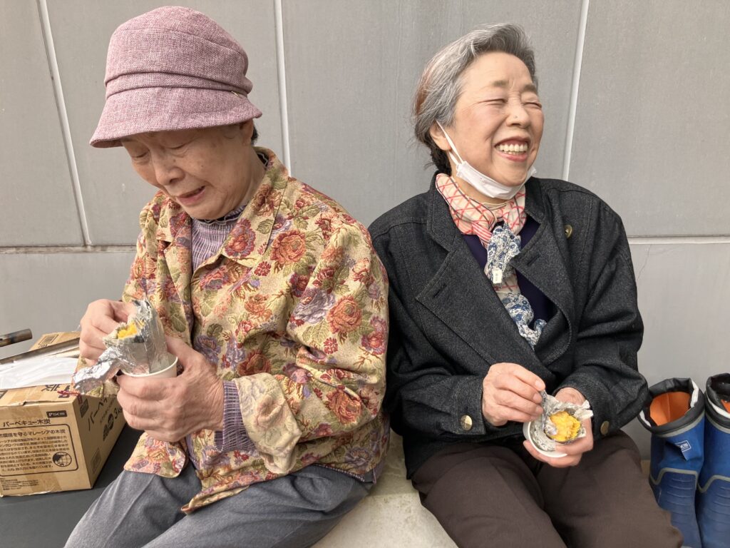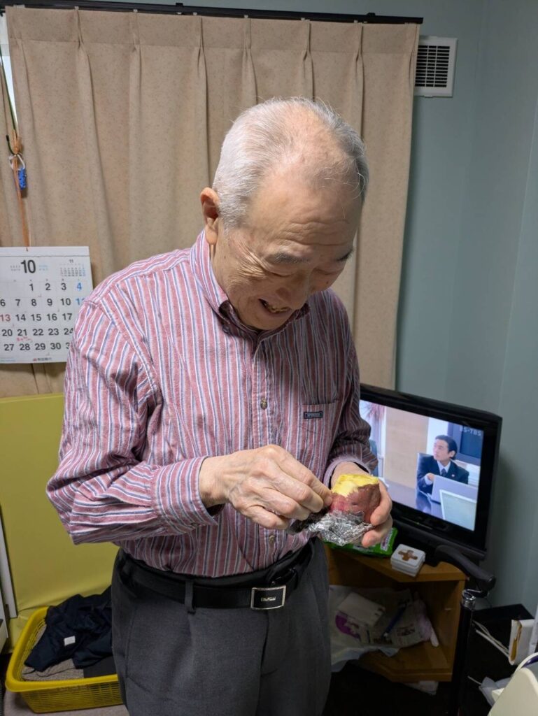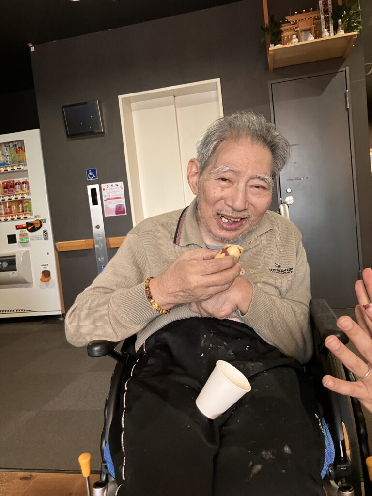 お二人の利用者さんが食べていたさつま芋は黄色い感じでおそらく『五郎島金時』だったんだと思いますが、これは少しほくっとした感じでカボチャとか栗に近い感じの甘味でした。
