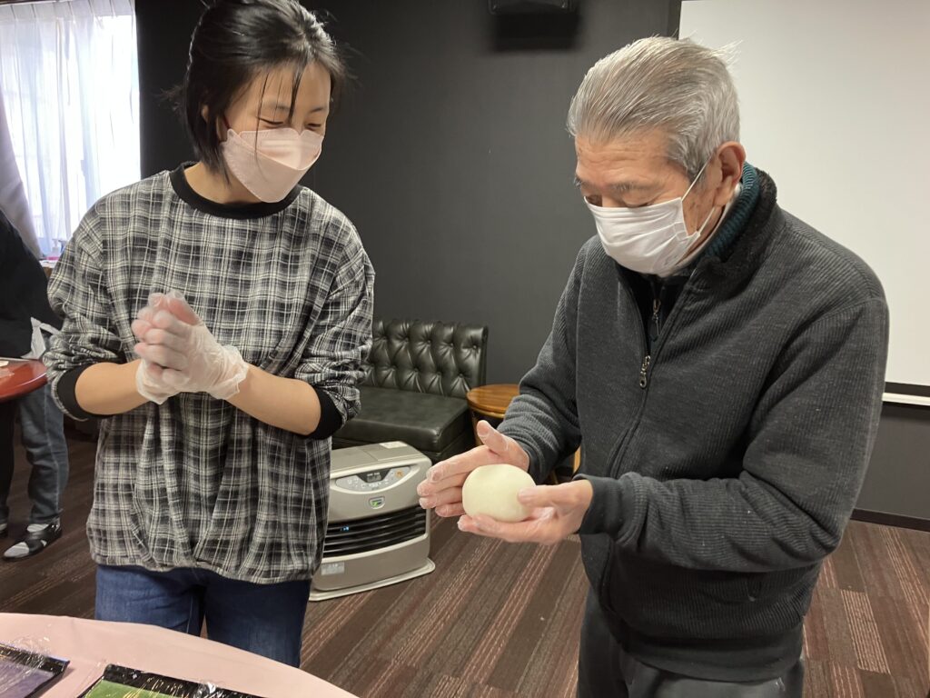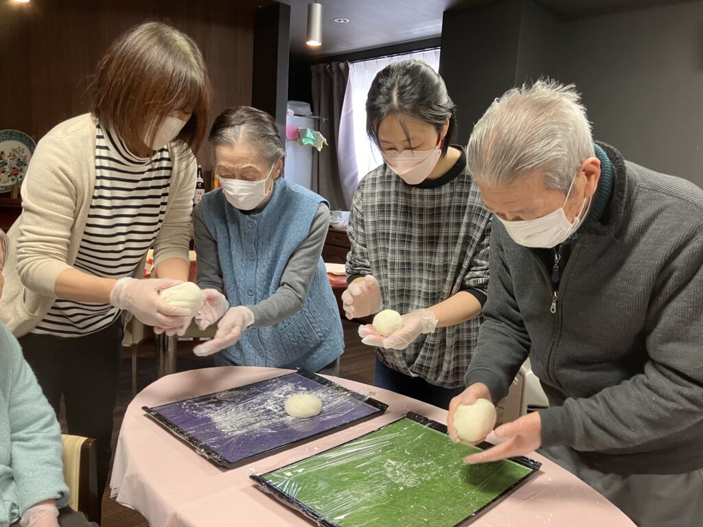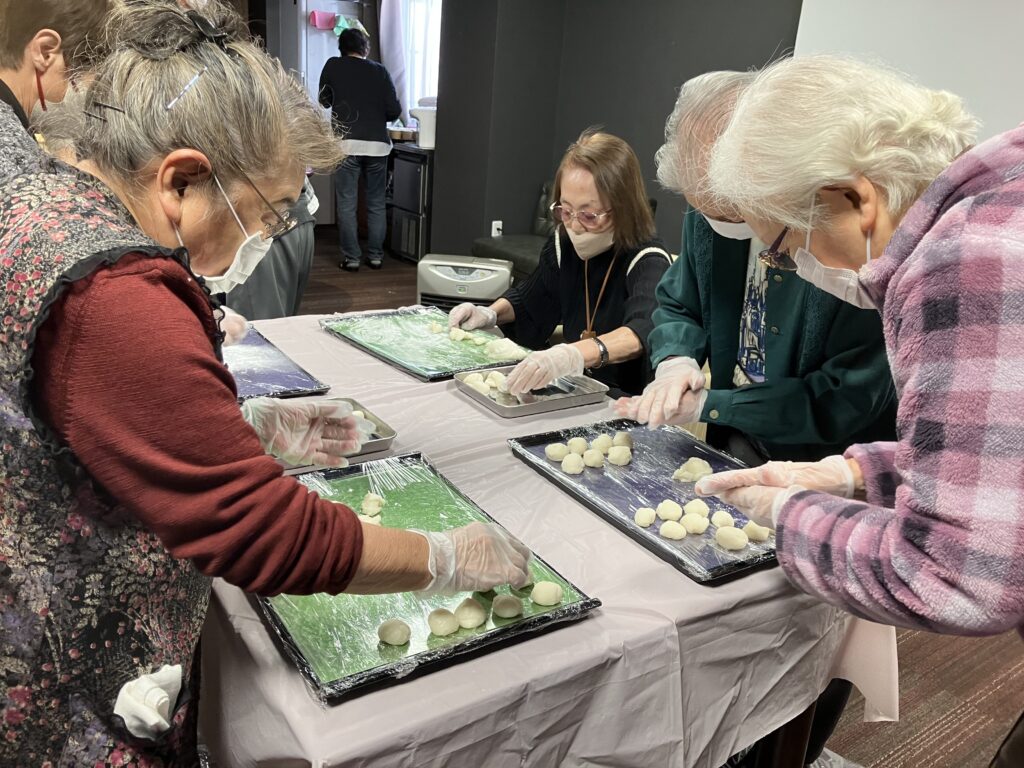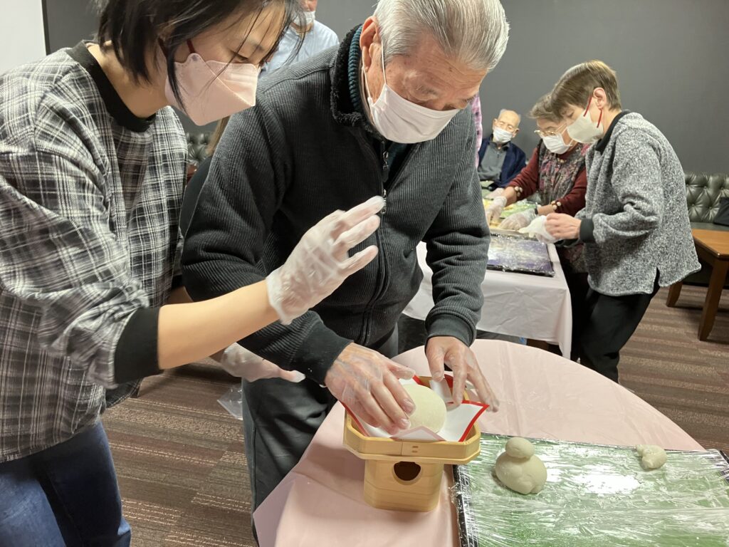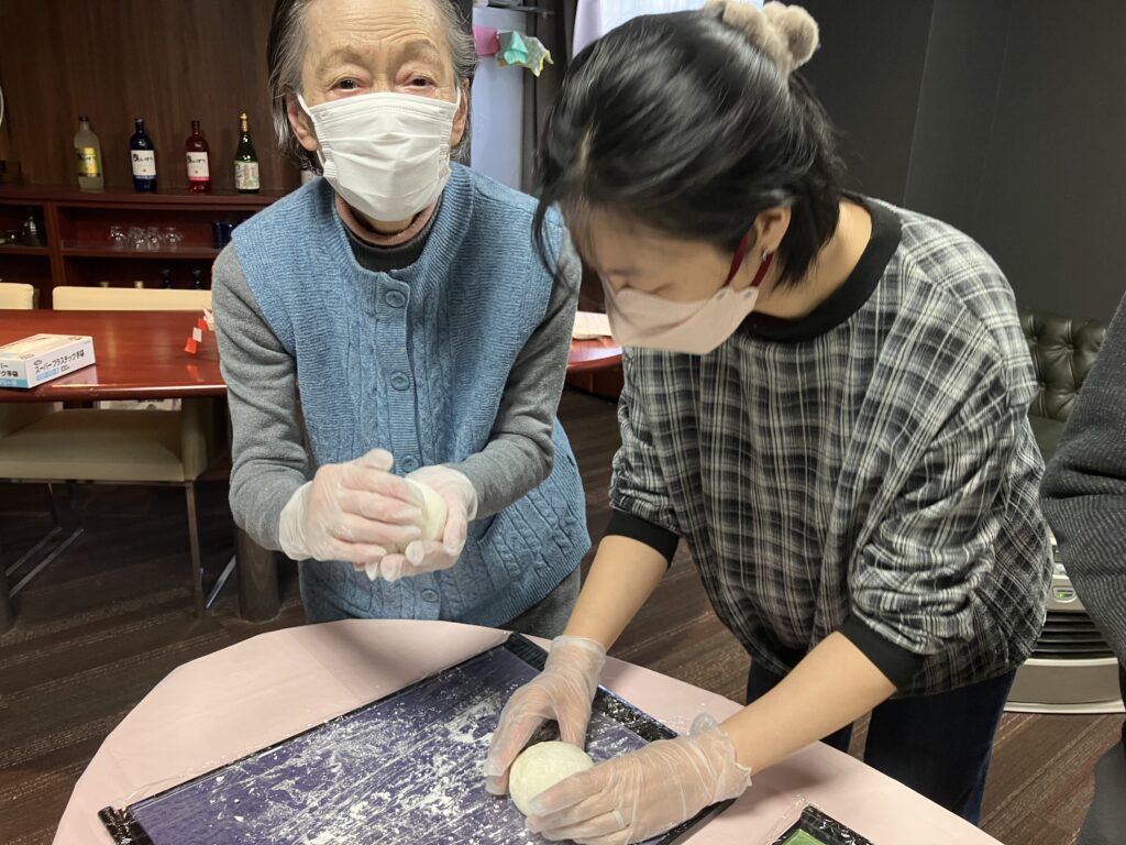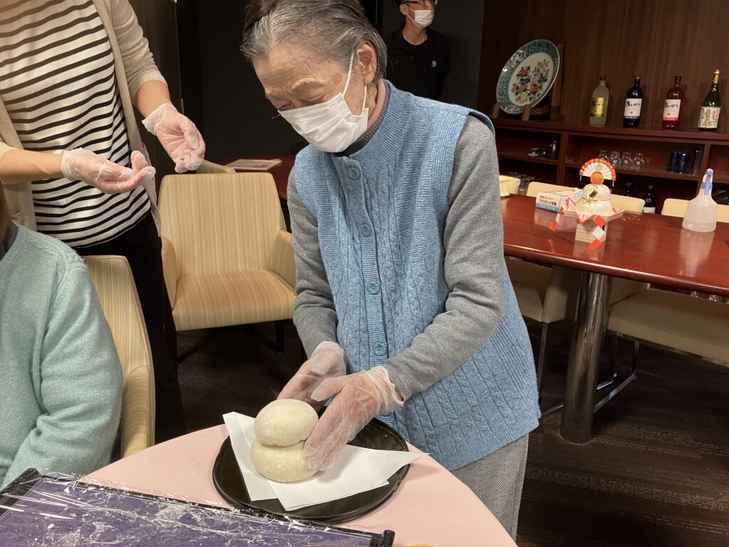 さっそく午後からラウンジで鏡餅作りを行いました⤴︎