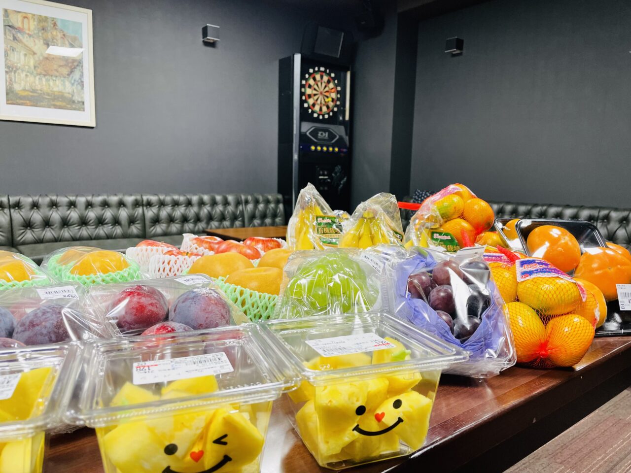本日のメインは湯沢の名店「高市青果」のいも天?とオランダ焼き?、そして秋といえば、果物?りんご、柿、ぶどうと盛りだくさんです✨