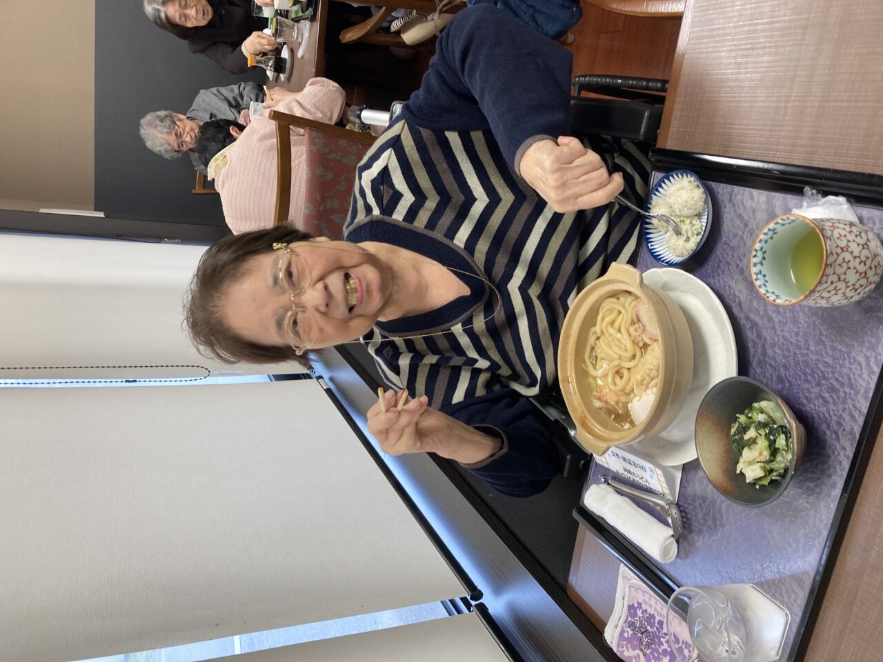 「体がポカポカしてきた」「今にぴったりの献立ね」と皆さん熱々の鍋焼きうどんをフーフーしながら堪能されており、今シーズン初の鍋焼きうどんは最高に美味しかった様子でした?