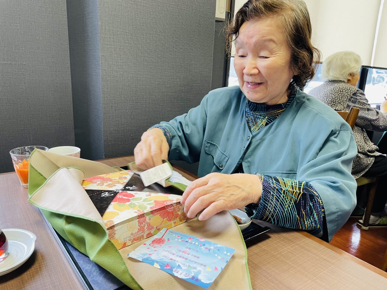 みなさんへお持ちすると一斉に風呂敷をほどきます!