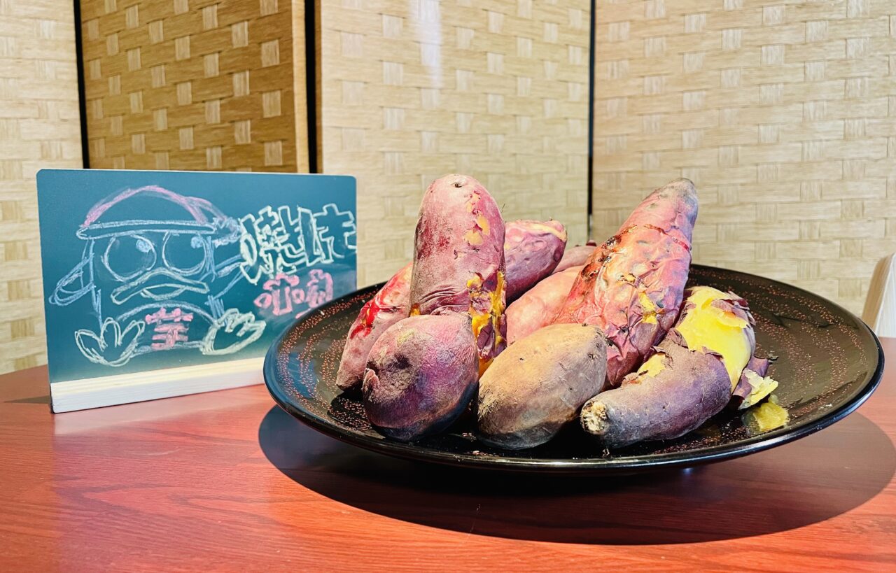 お好きな石焼き芋を選ばれたら、アツアツホクホクをあったかいお茶とともに召し上がっていただきます♡