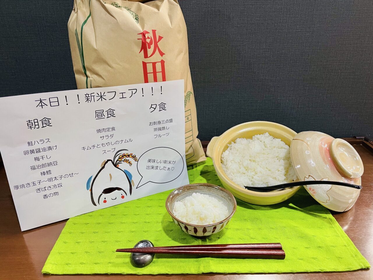 『本日!!新米フェア!!!美味しい新米が出来ましたぁ♡』ラストは夕食です?
