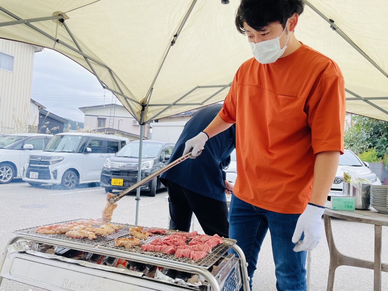 外から聞こえるジュージューという音と、炭火の煙を感じながらみなさんBBQを楽しみます?