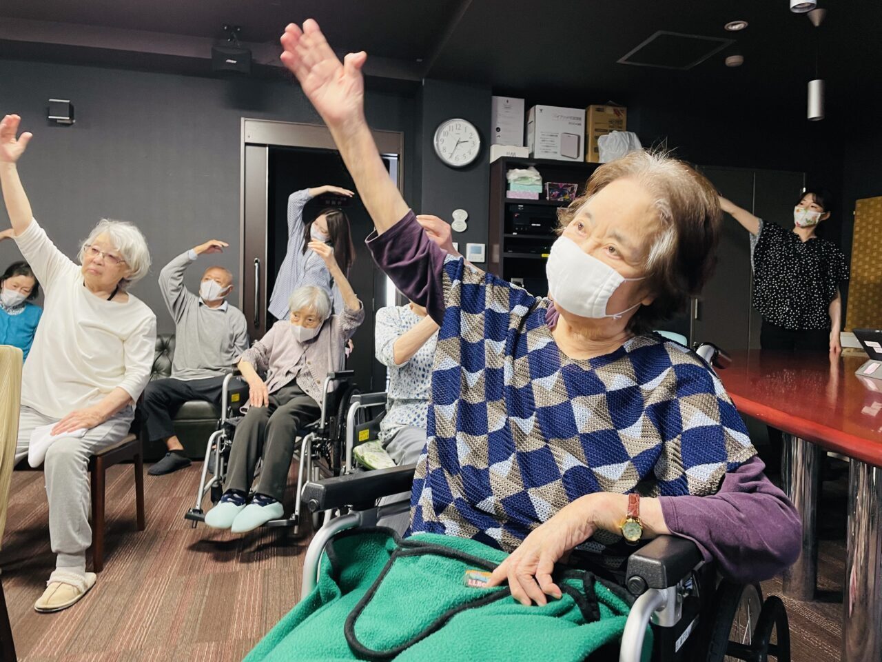 伸ばし〜、曲げて〜、上へ〜と、みなさん余裕です?‼️
