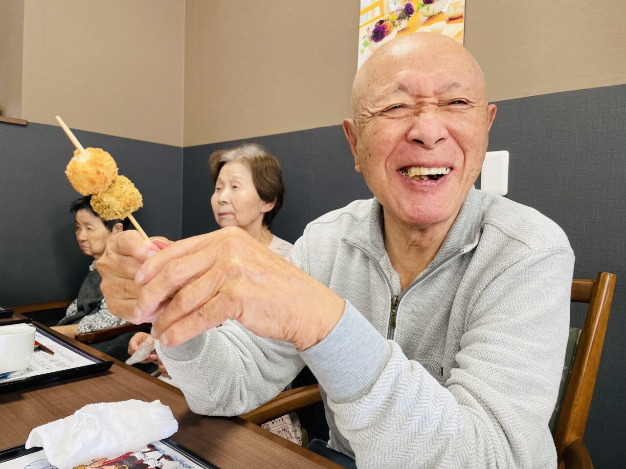 利用者さんと一緒に目をキラキラさせながらバイキング楽しみました笑