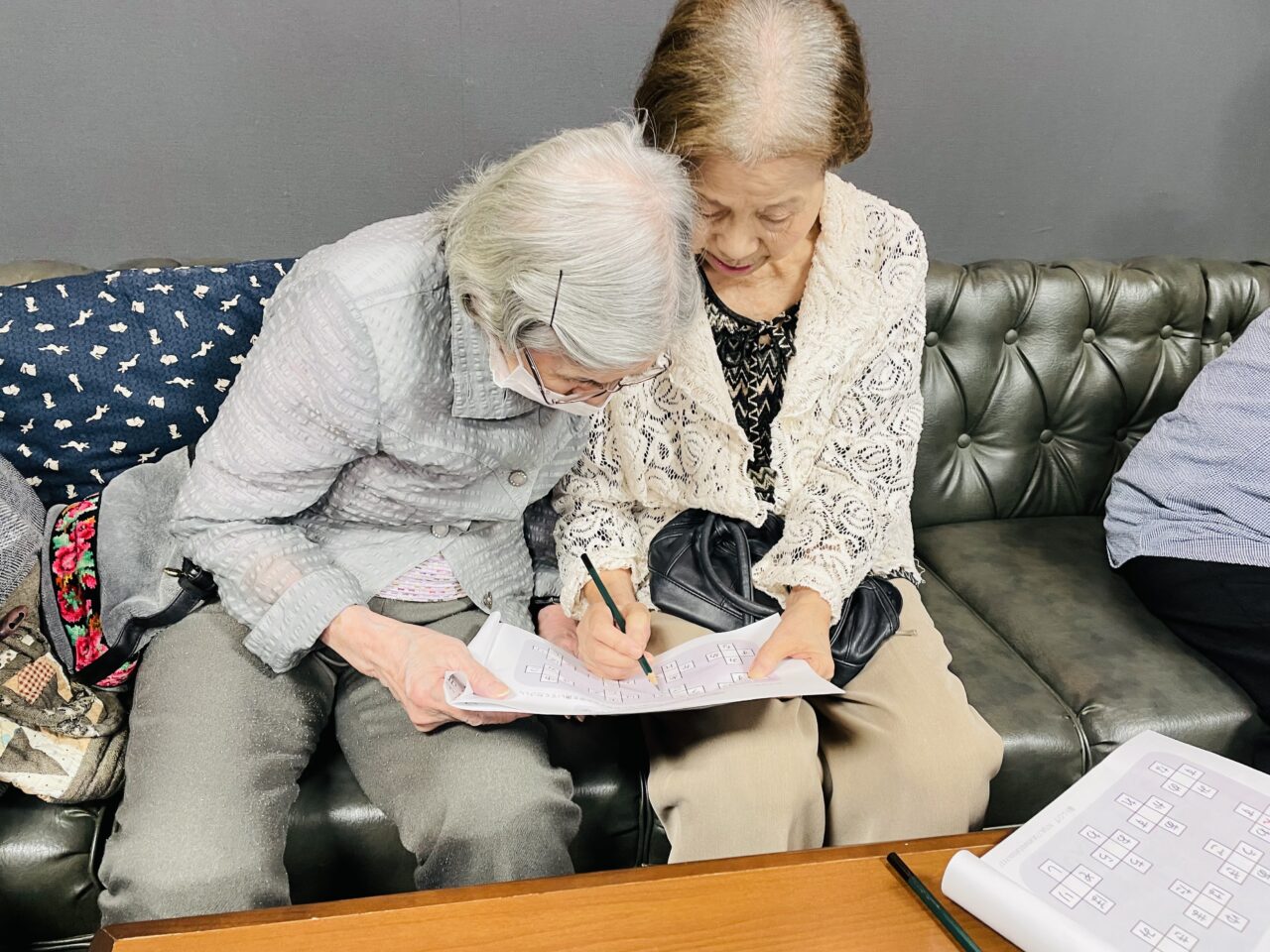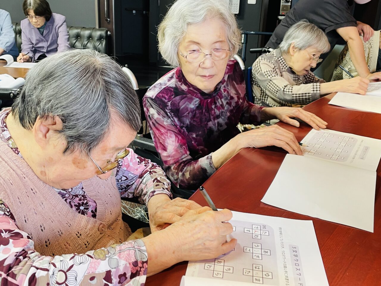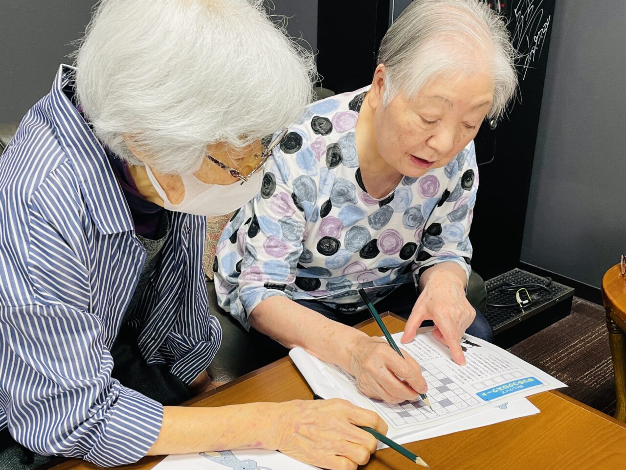 「これ分かる?」「ここ何入るんだろうね?」「難しいね〜」と、隣の方と一緒に会話も楽しまれながらスラスラとクロスワードを解いていきます??