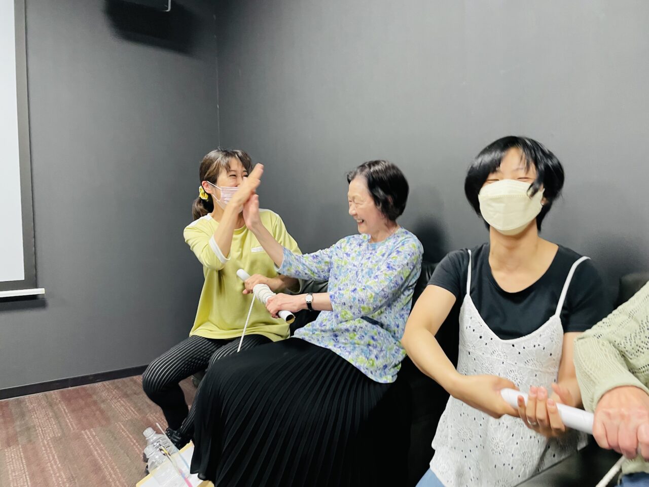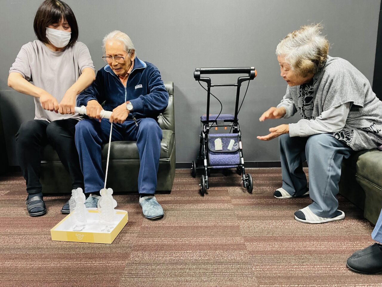 ゲームが始まると、利用者さんもパートナーも凄い勢いで糸を巻いていきます笑