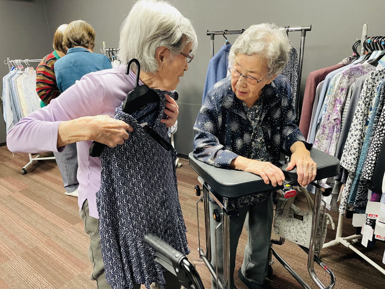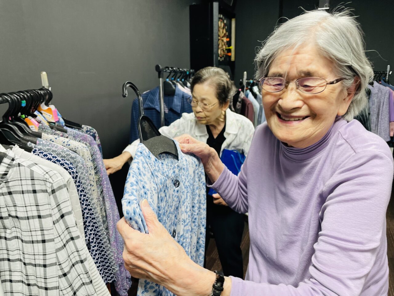 洋服を見せ合ったり、他利用者さんに似合いそうな服をおすすめしたりと、みなさんとても楽しそうです???
