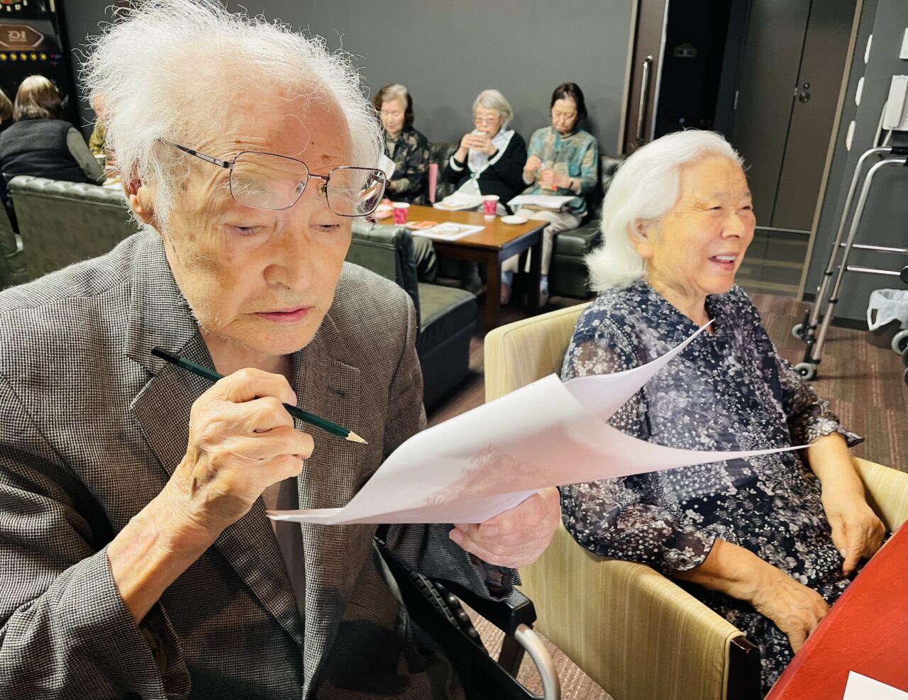 お茶会では、お渡しした『俳句クイズ』の解説と、『松尾芭蕉の人物像』などをまとめた資料をみながら、「こういう意味だったんだね!」「すごい人だったんだね〜」「51歳で亡くなったんだ!?」など、会話も楽しまれていました♡