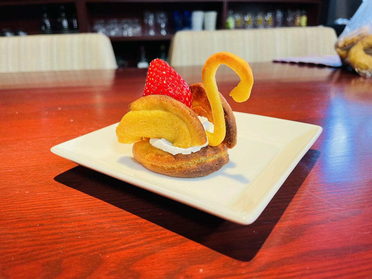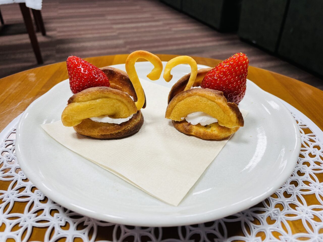 イチゴがのって、見事『スワンシュークリーム』の完成✨