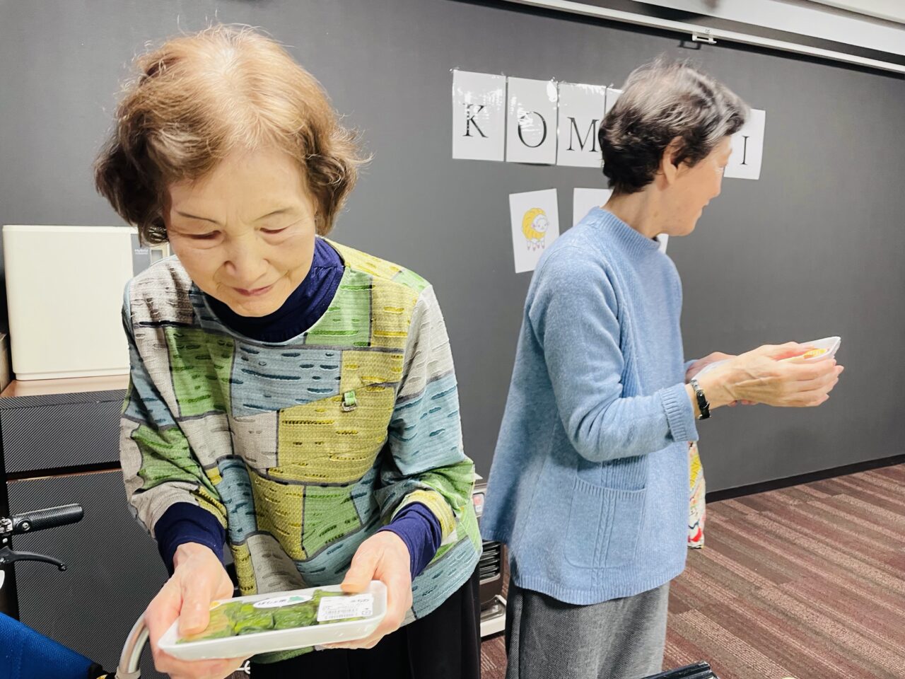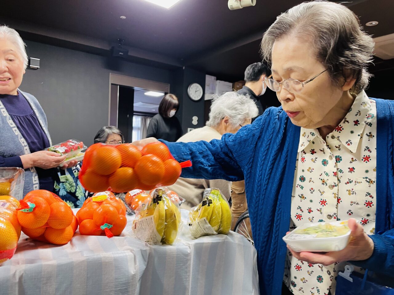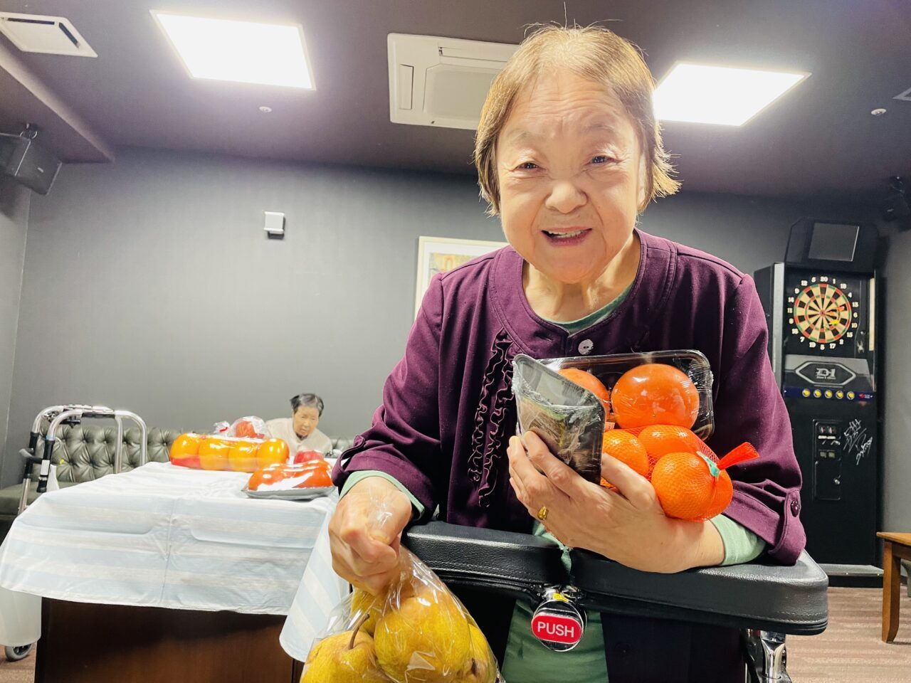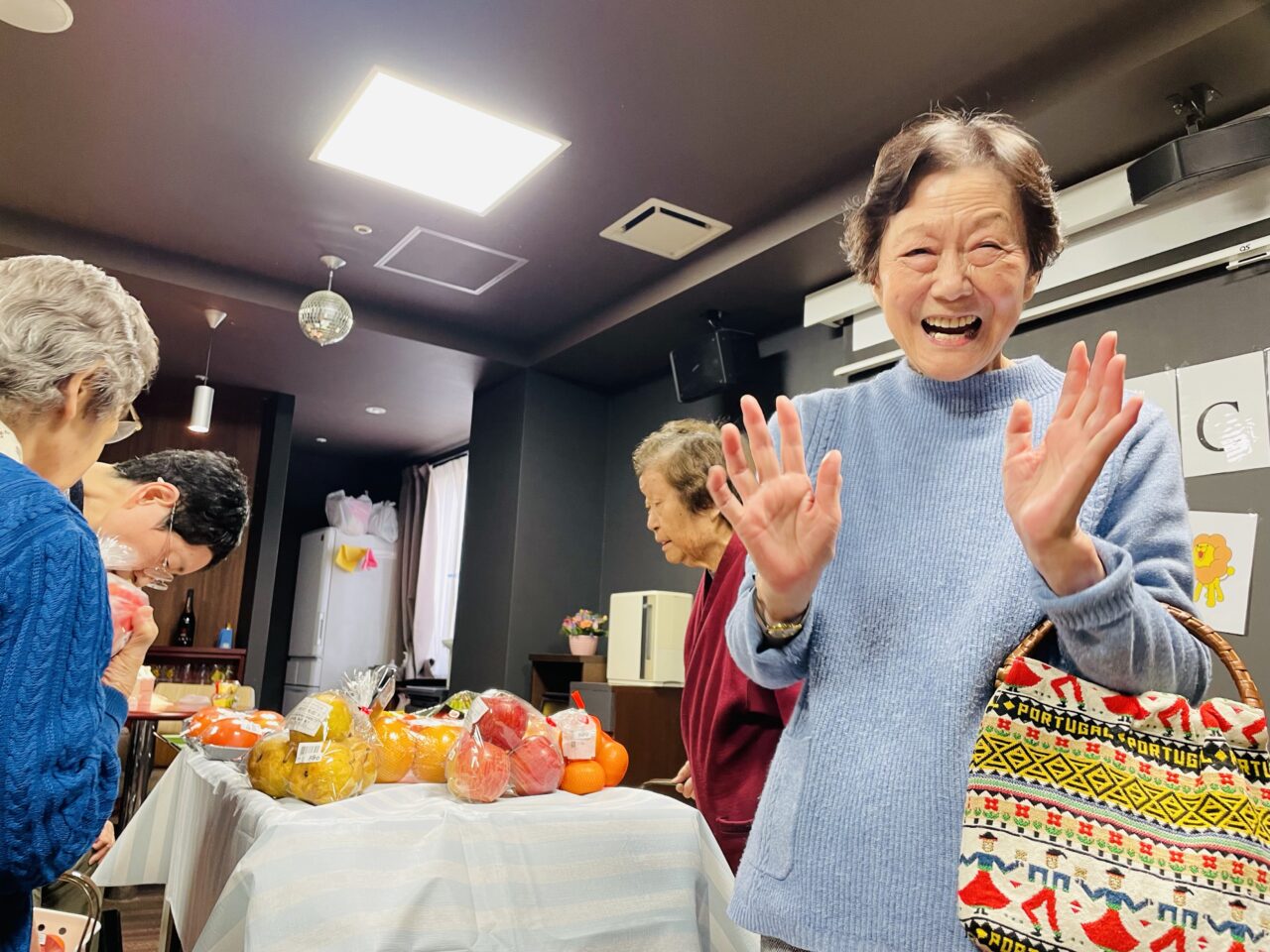 沢山のフルーツに沢山の漬物😀皆さんホクホク顔ですね!大好物のイチゴを手に取るご利用者さんも🥰これから雪が積もるともっと外出できなくなるので『KOMACHI』は一層活用の場となりますね。次回も楽しみです🍀