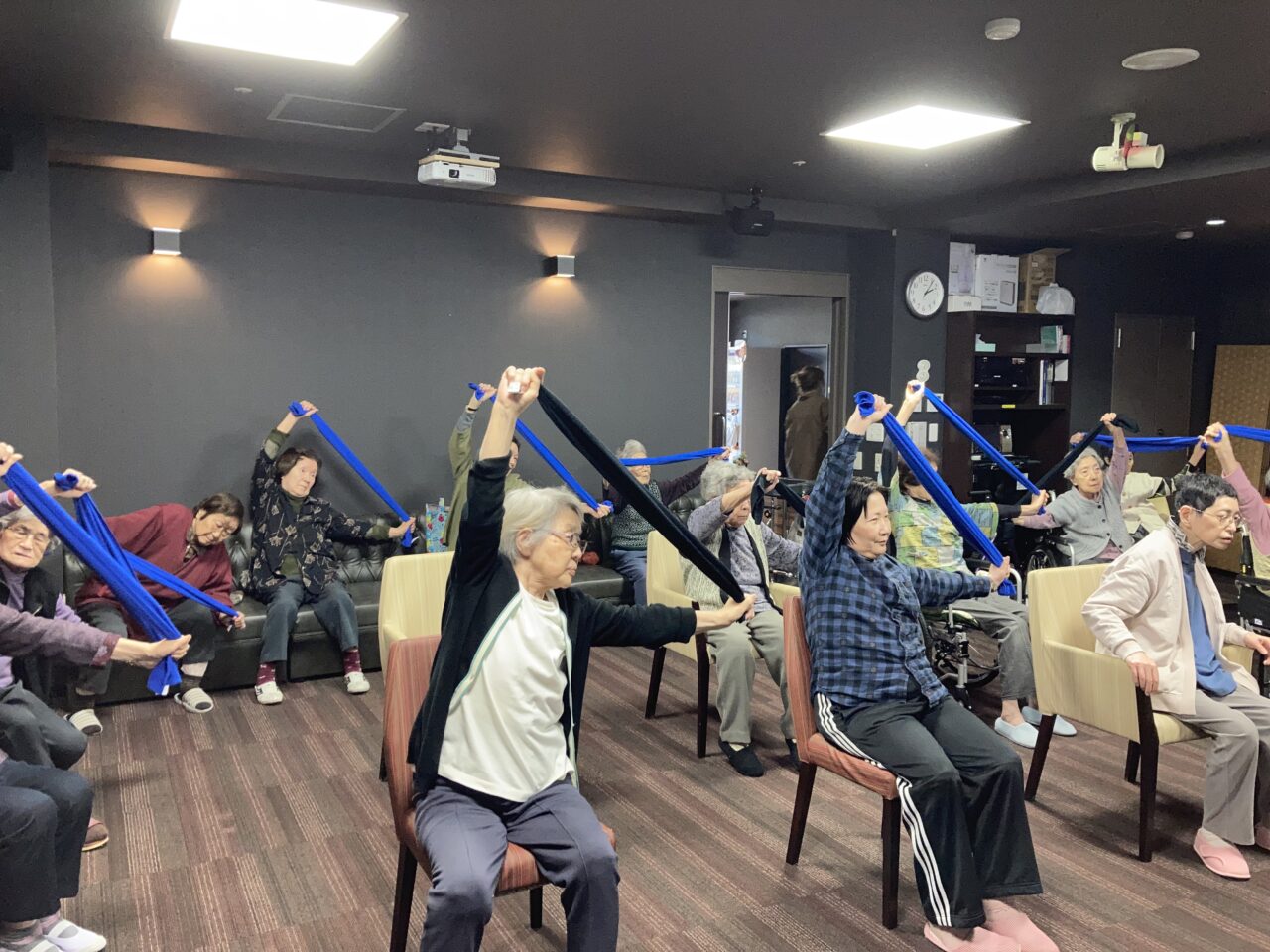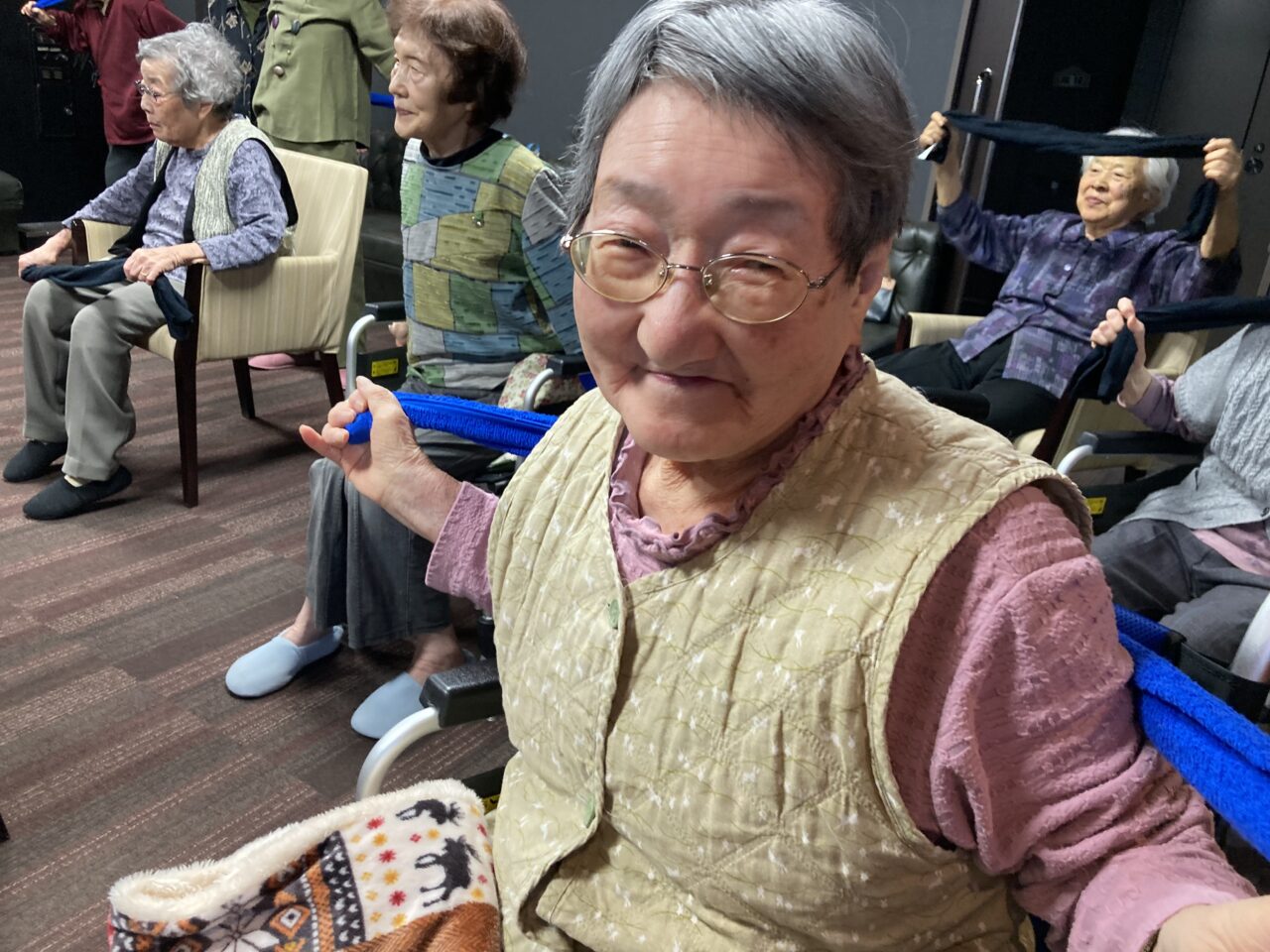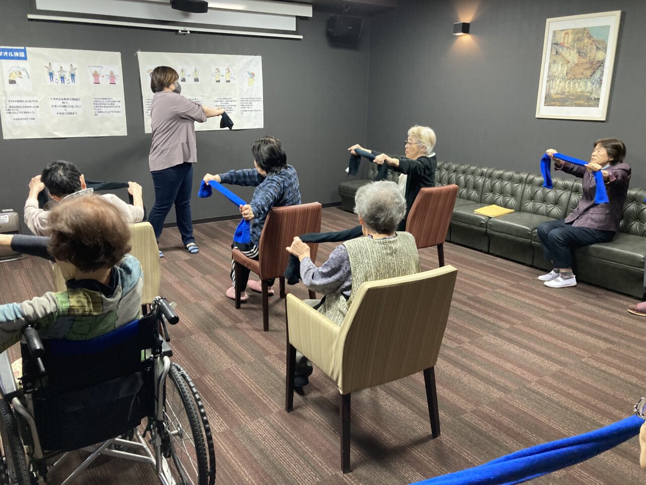 今日は月に1回の運動、タオル体操を行いました?