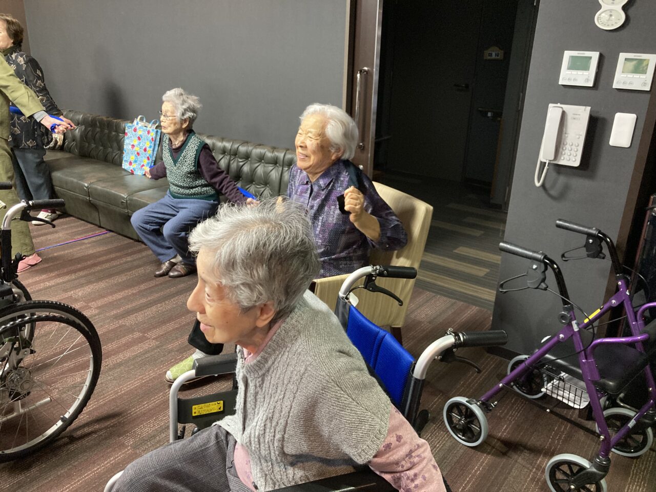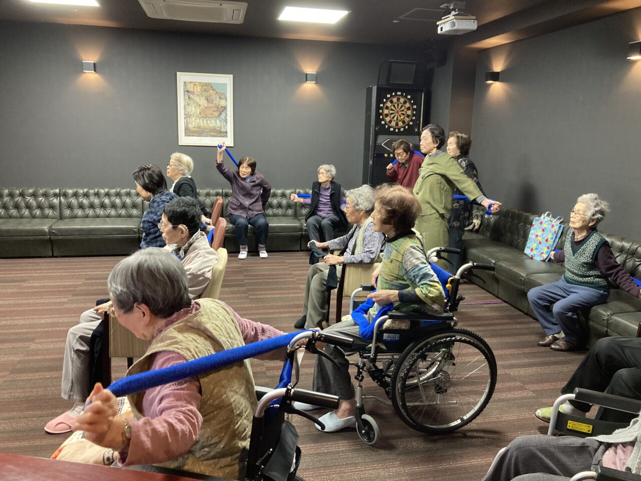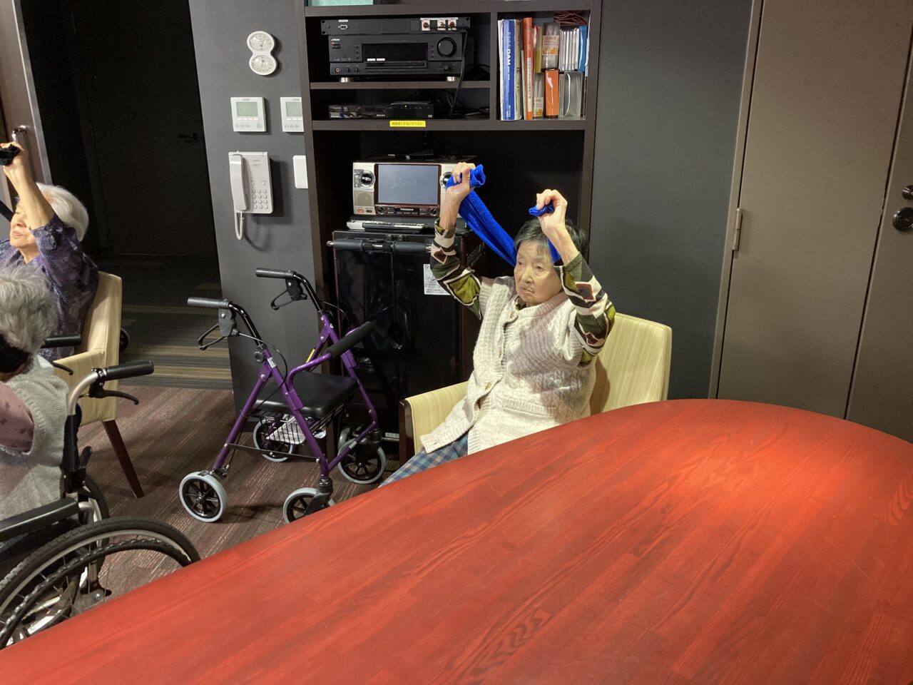 今日は月に1回の運動、タオル体操を行いました?