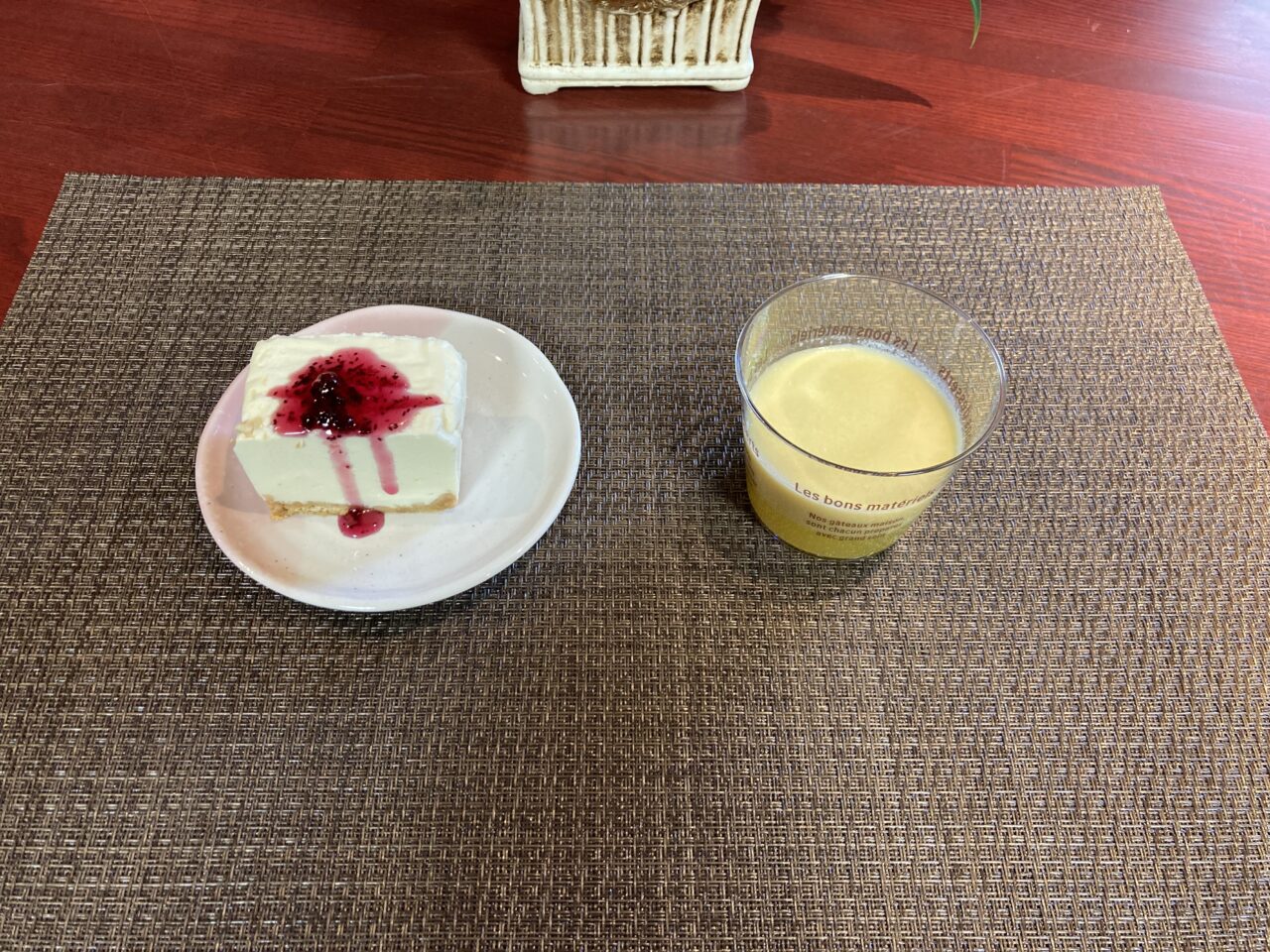 恵美パートナー作のオレンジババロアと髙橋作のレアチーズケーキです?