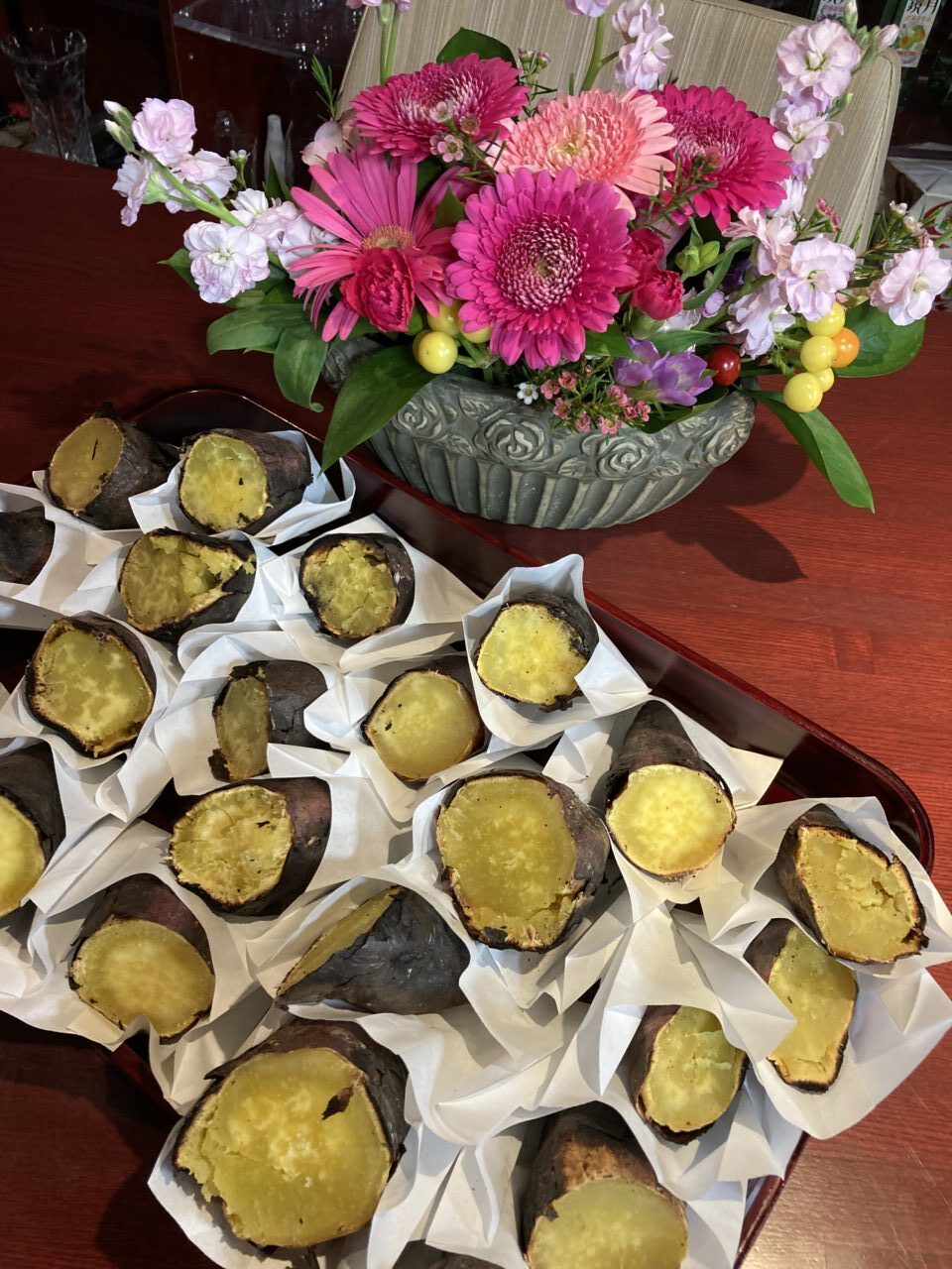 今日は、このさつま芋を炭火で焼いて召し上がって頂きました。