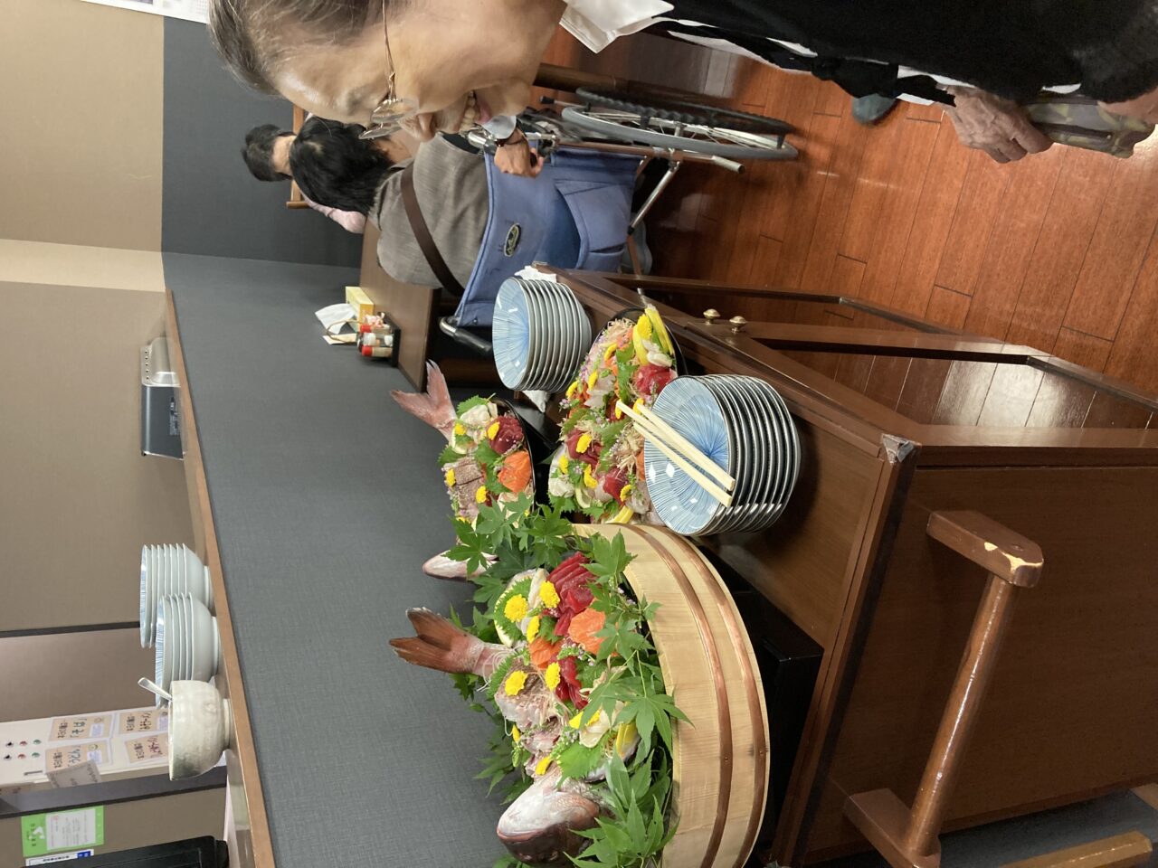 皆さん好きな刺身のネタを選んで美味しそうに召し上がっておりました。