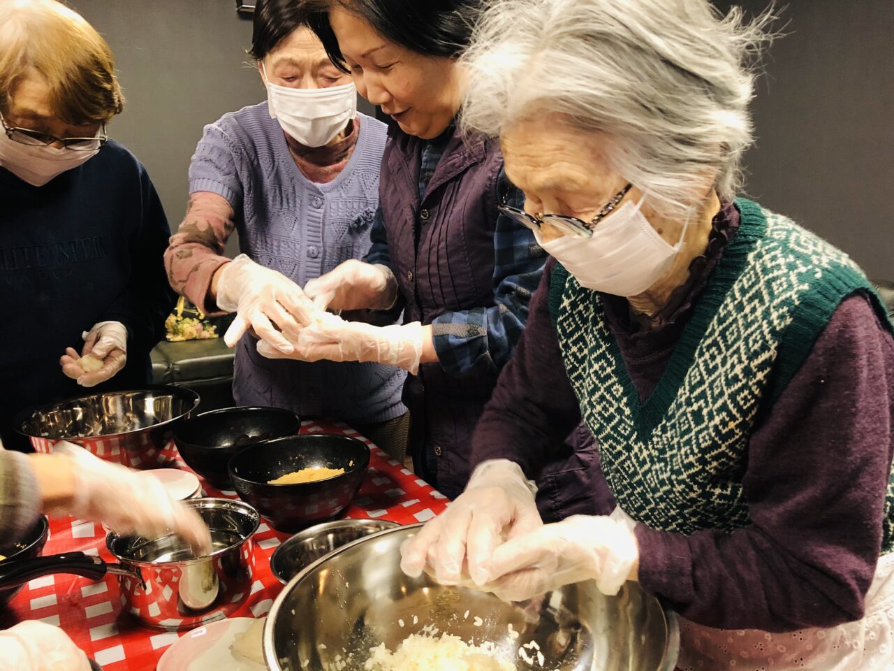 「あーでもない、こーでもない」と、牡丹餅作りに集中笑笑