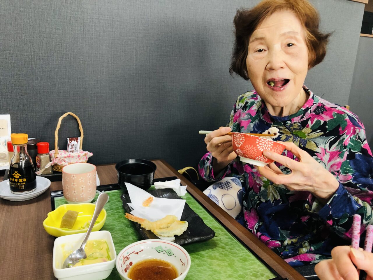みなさん、「あら!えごだしゃー!」「私、お赤飯大好き?」「天麩羅もサクサク!!」と、大好評な昼食となりました?‼️