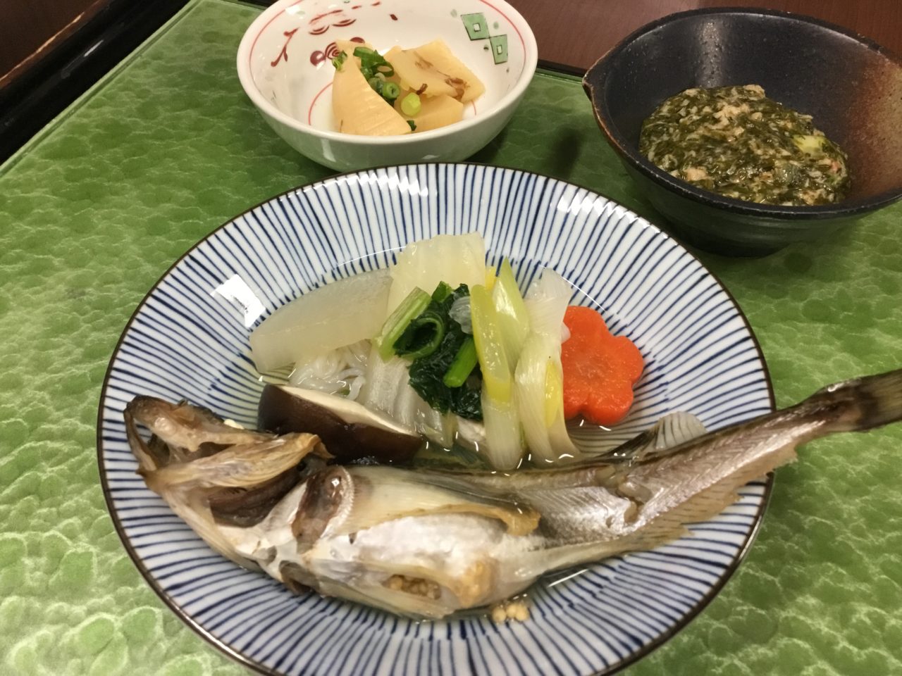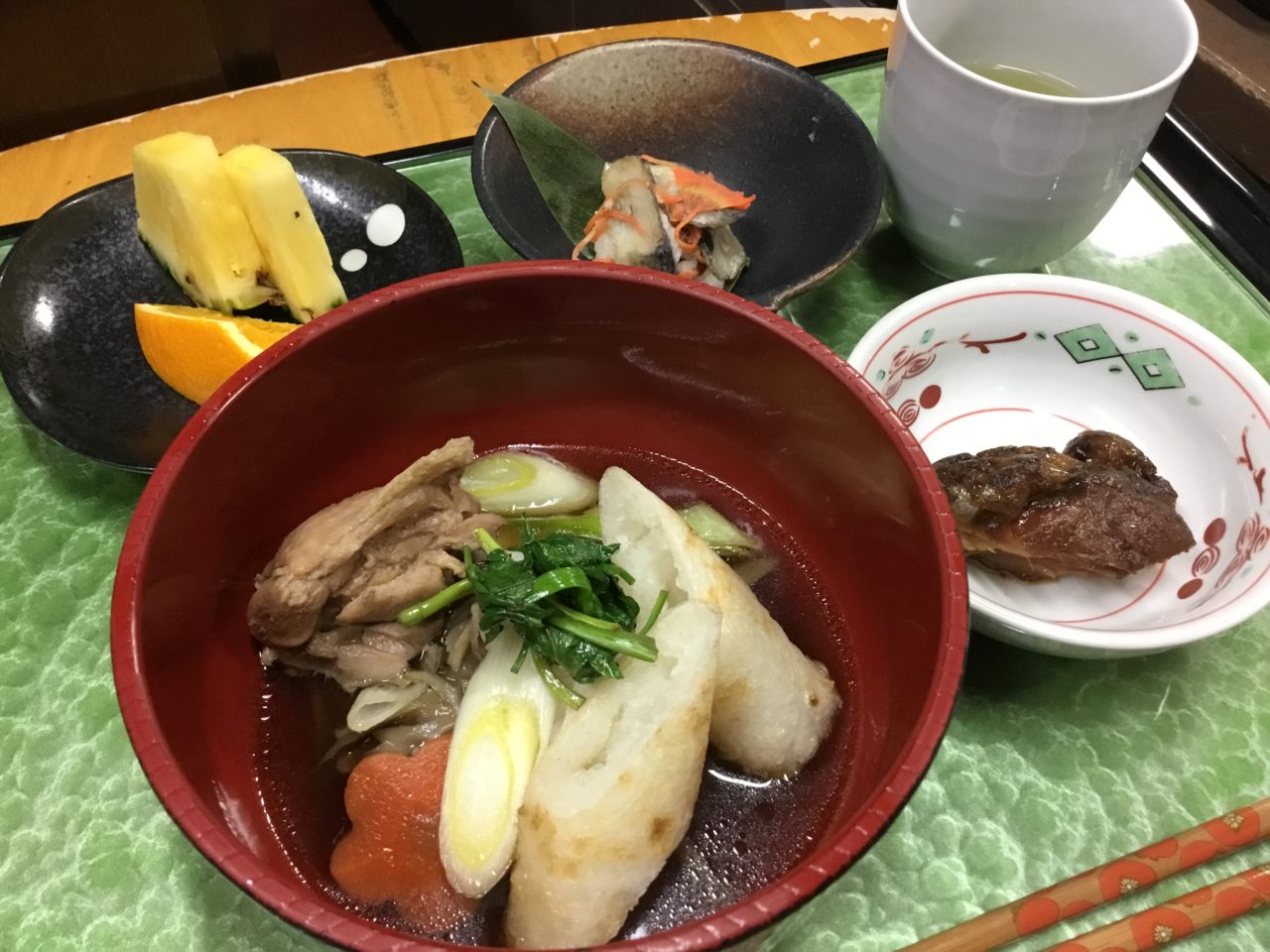 夕食はきりたんぽ、ハタハタ寿司、鯉の甘煮と秋田の「ごっつぉ」を楽しんでいただきました?