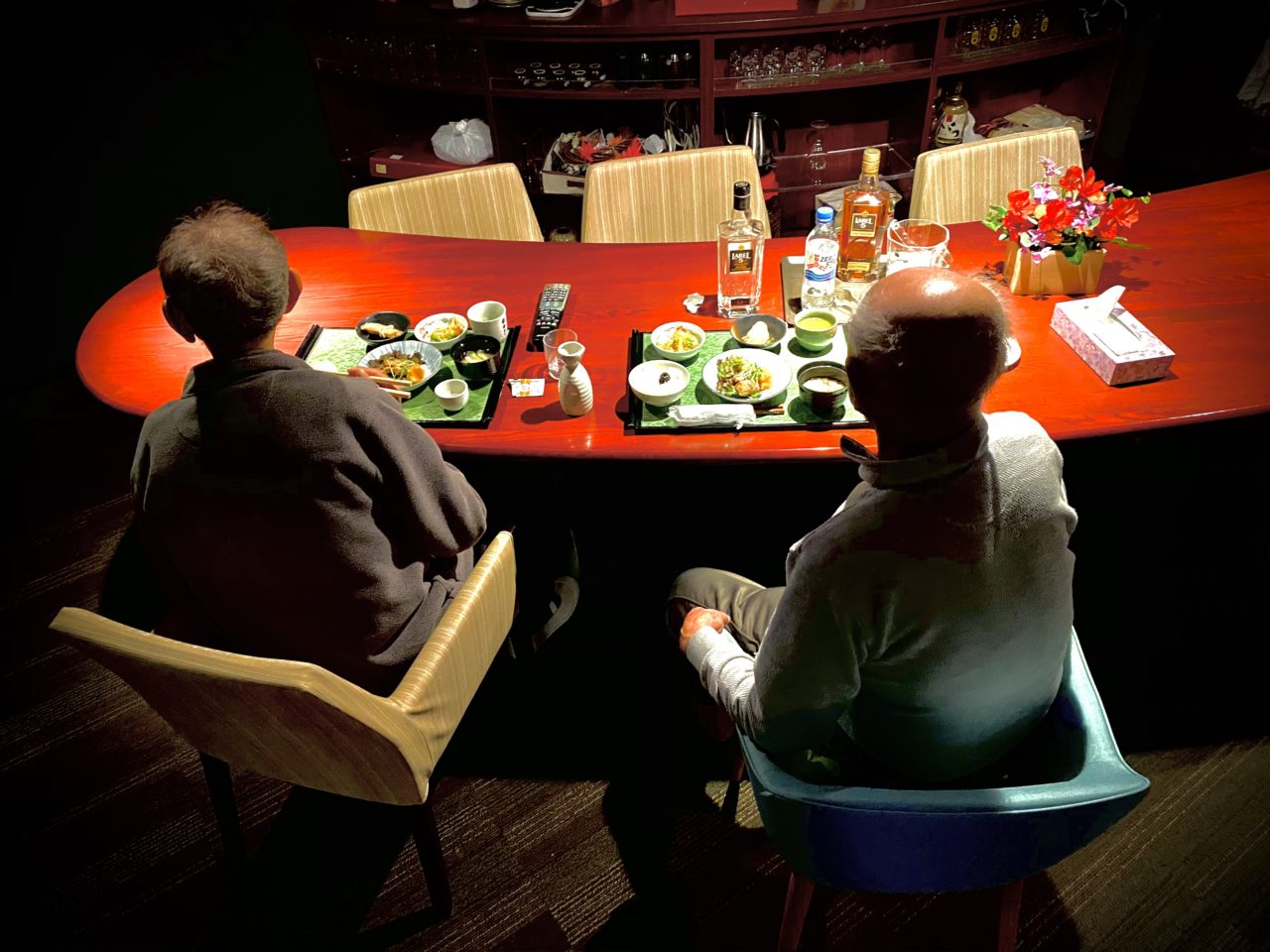 以前からお一人で晩酌をされていたご利用者がおりましたが、最近入居された方も晩酌をされるということで、ラウンジにてご一緒に晩酌を楽しんで頂きました??