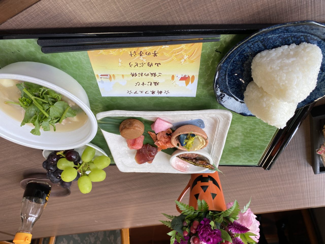 ご飯のお供は、梅干し、漬物(花なす、赤カブ、大根)、わかさぎの甘露煮、カツオ酒盗、マグロ漬け、たらこ、にしんの切込み、しょっぱいぼだっこでした?