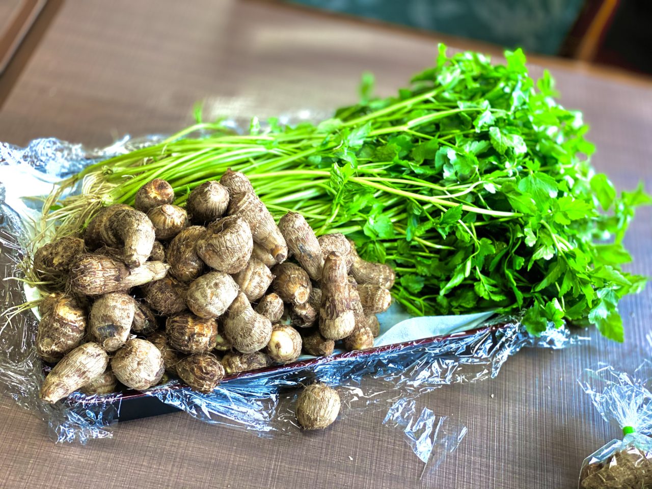 芋の子は山内産、セリは地元湯沢産のものを使っています‼️