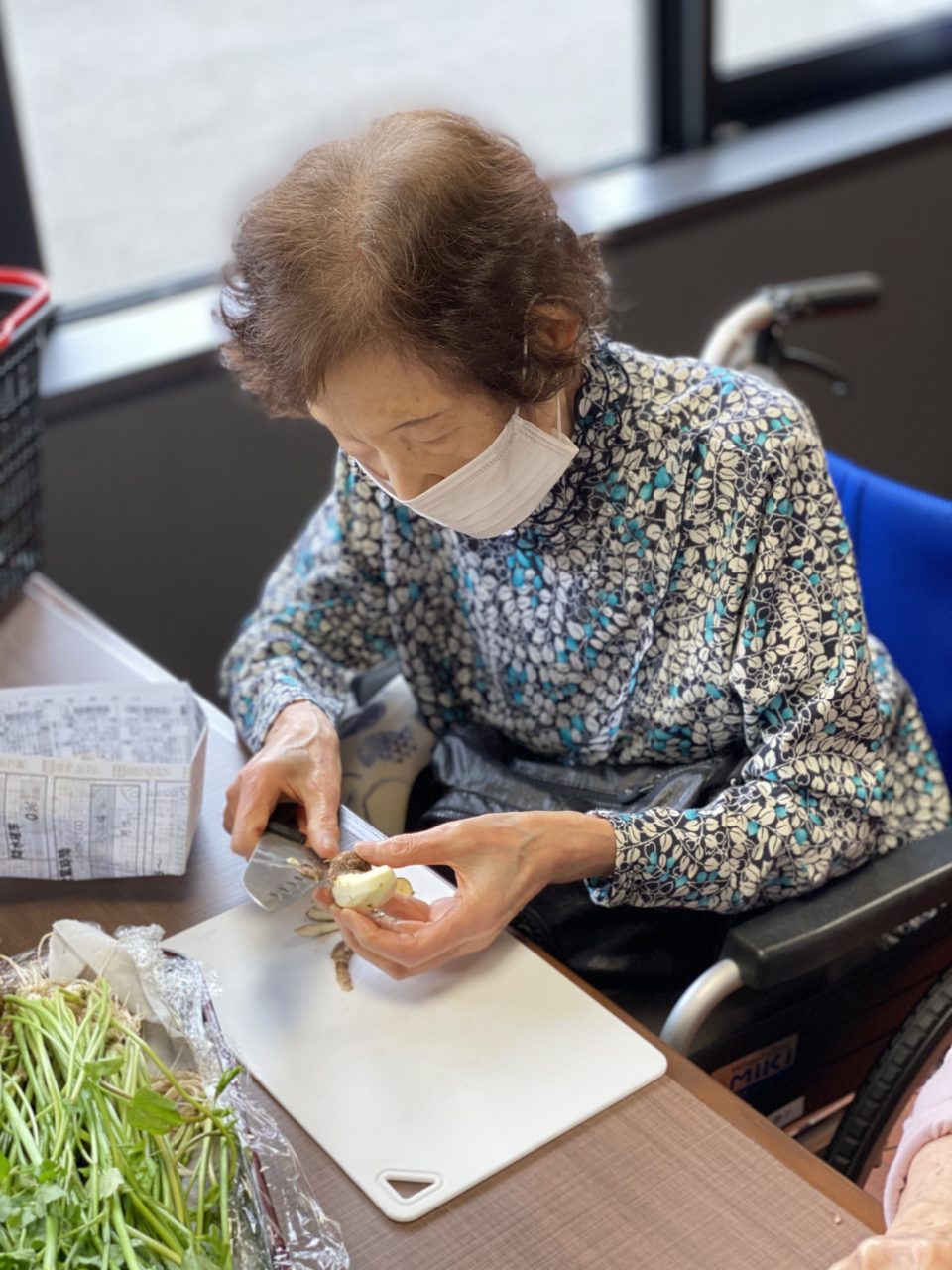利用者さんがむいてくださった芋の子はなんだかとってもおいしそうに見えます✨