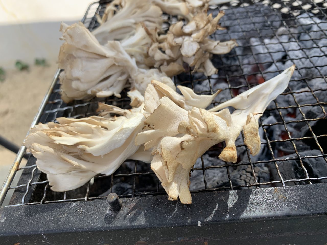 付け合わせの舞茸も炭火でじっくり、、、