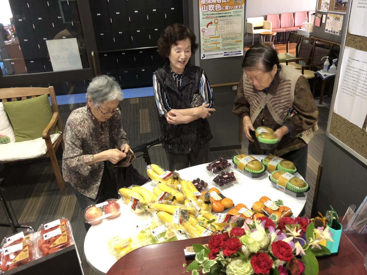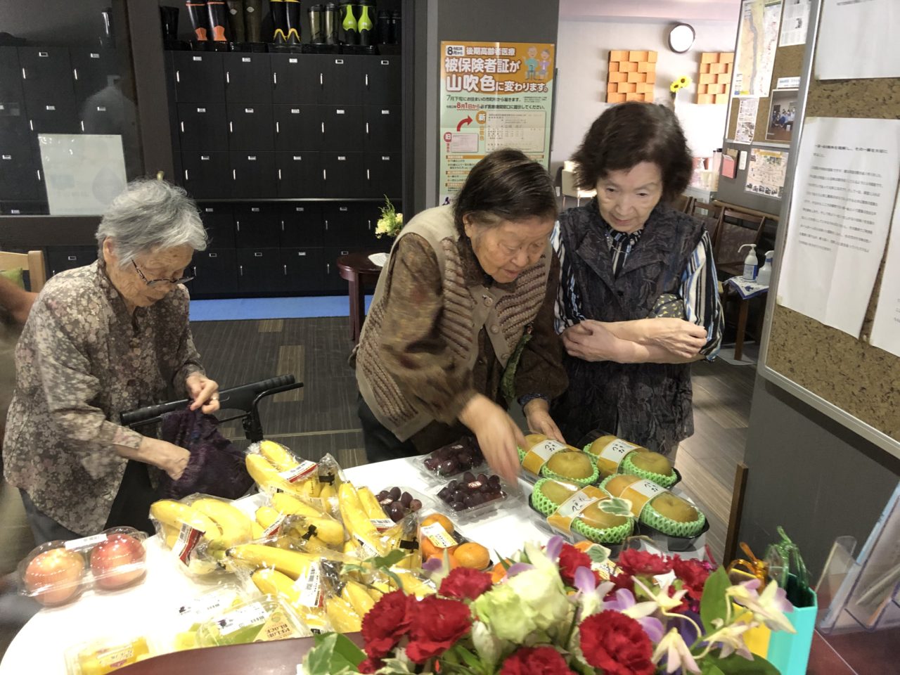 オープン早々、皆様それぞれフルーツを沢山購入して下さいました。2時間程でしょうか、有難いことにあっという間に完売!受付の岡本パートナは大童?(ありがとうございました?)
