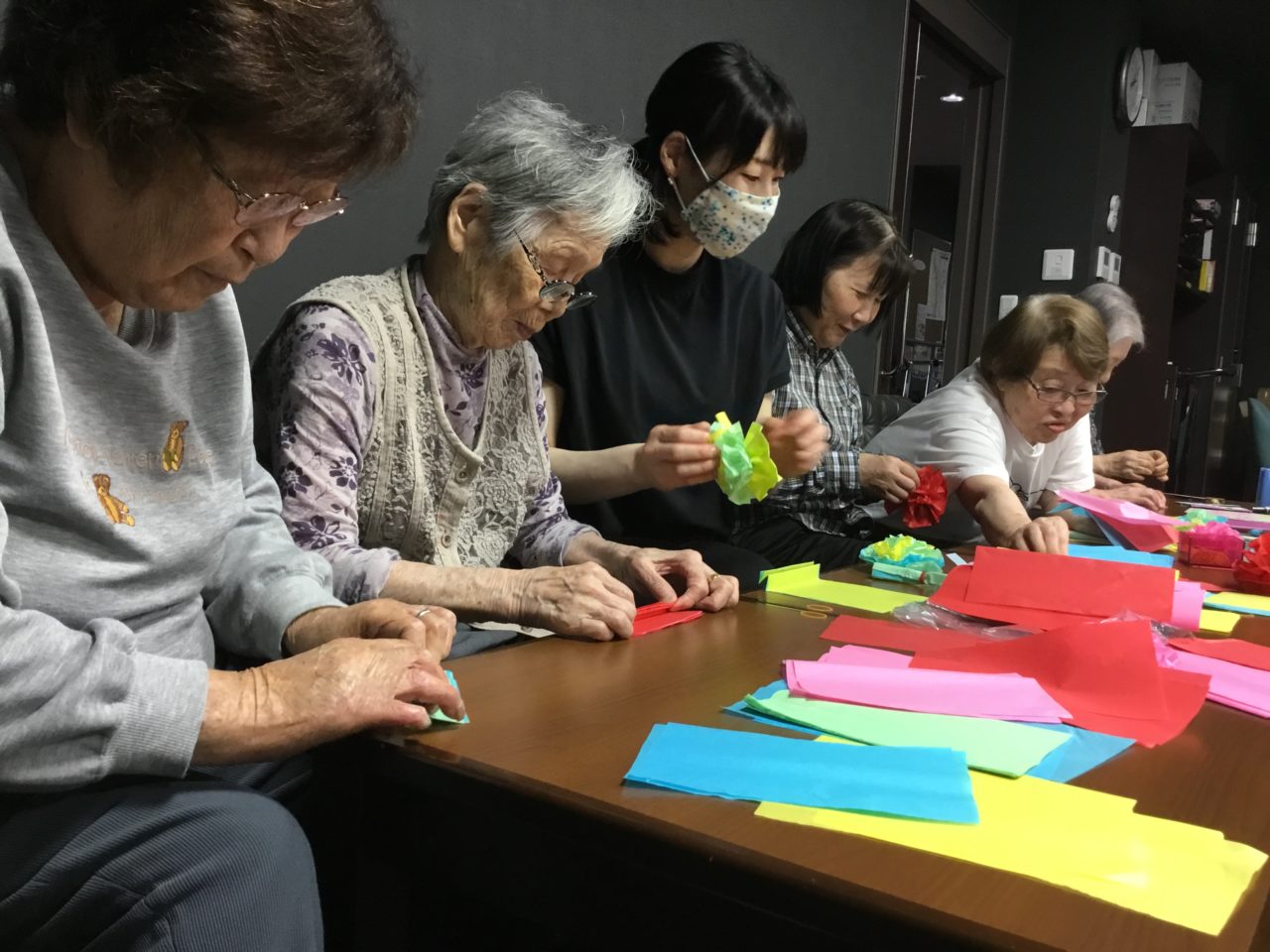 手作りしたのは「お箸袋」と「ぺーパーフラワー」
