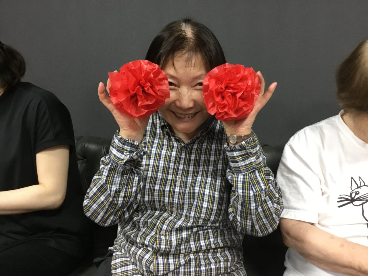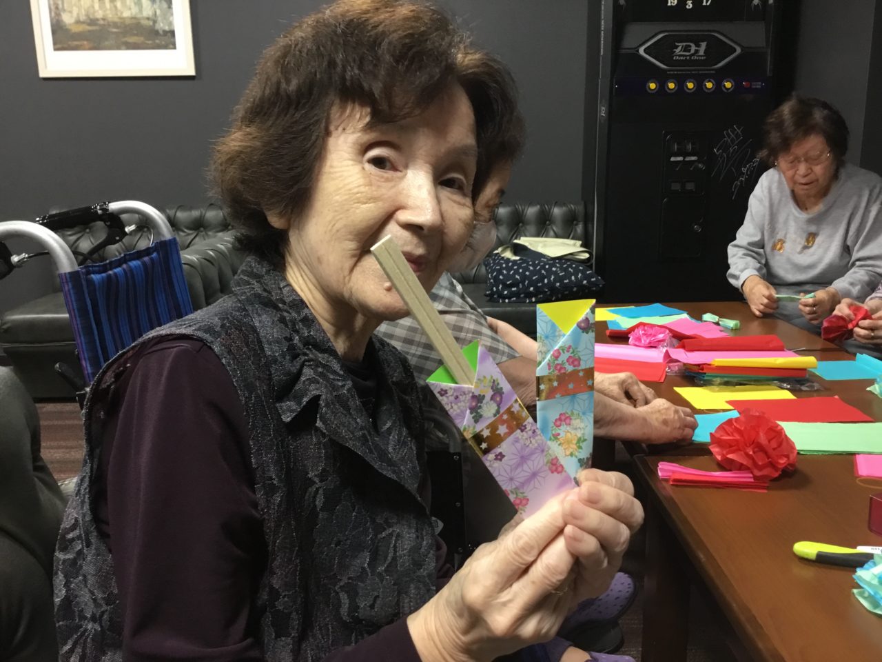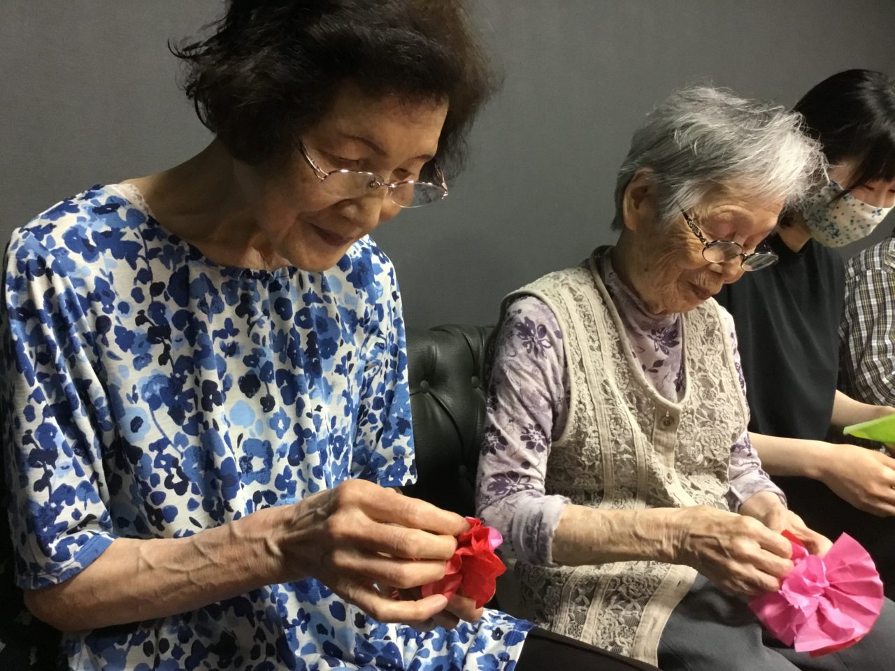 利用者さんと一緒に飾り作りを行いました。