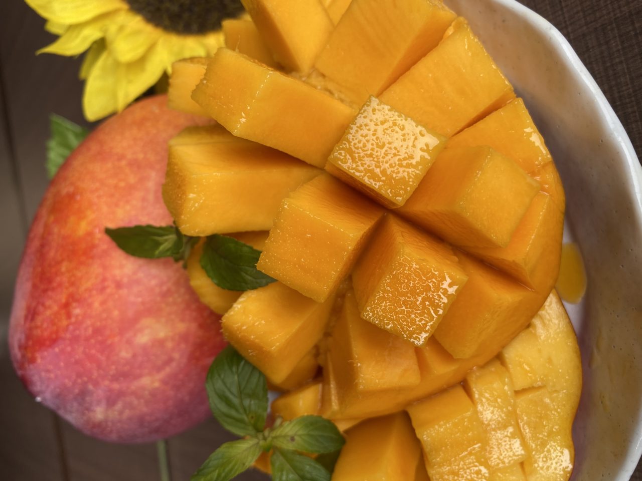 切っている最中から、周囲に甘ーい香りが漂って来ました?早速ご利用者さんへお昼ご飯のデザートで提供させて頂きました?