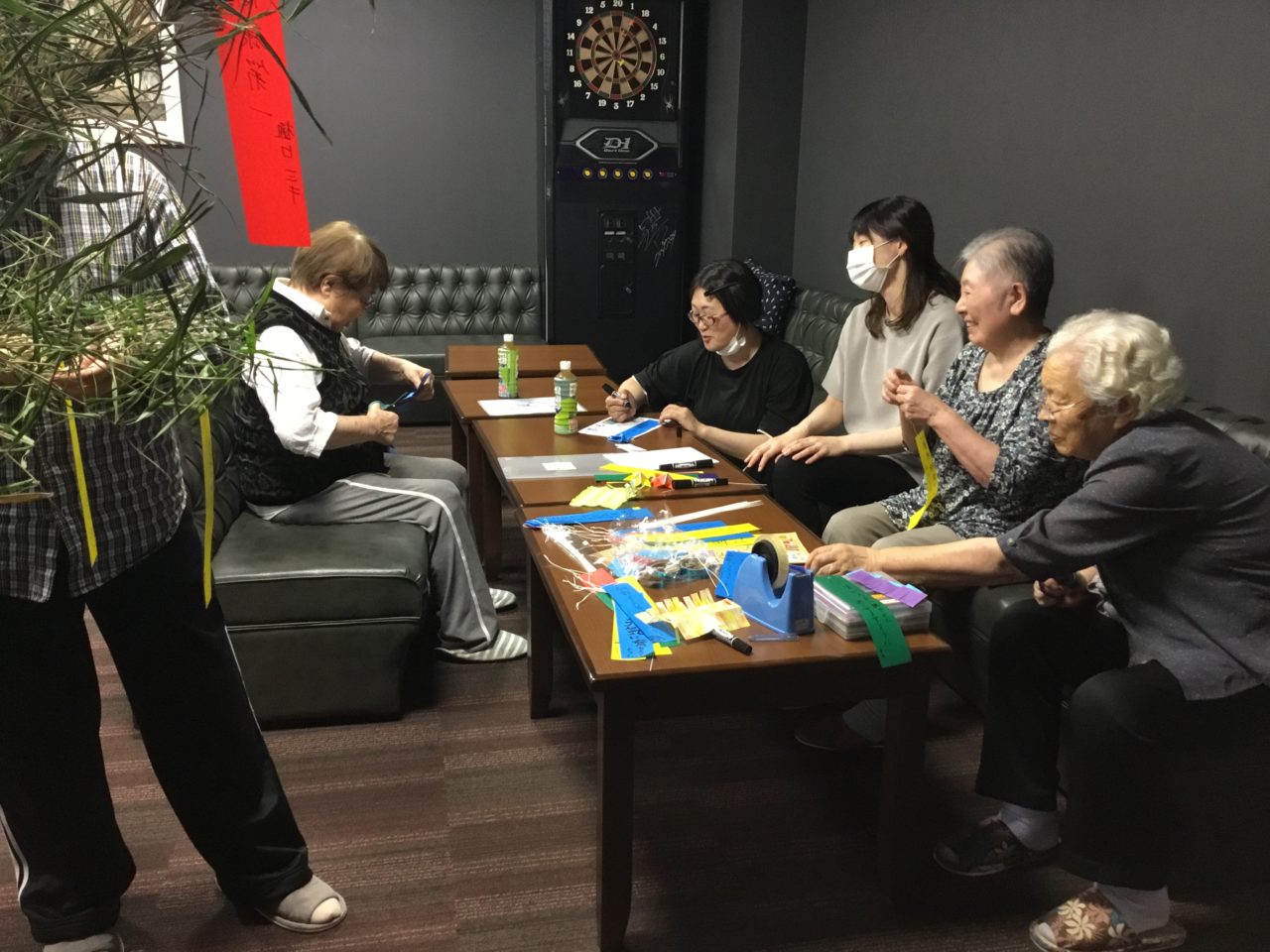 2020.07.06 七夕飾り? さらさ湯沢 こんばんは、さらさ湯沢の美奈です! 今日は、ご利用者の皆さんと一緒に七夕の飾り付けを行いました✨ 完成後は皆さんで七夕の歌を合唱しました?♬ 皆さんの願いが叶いますように?
