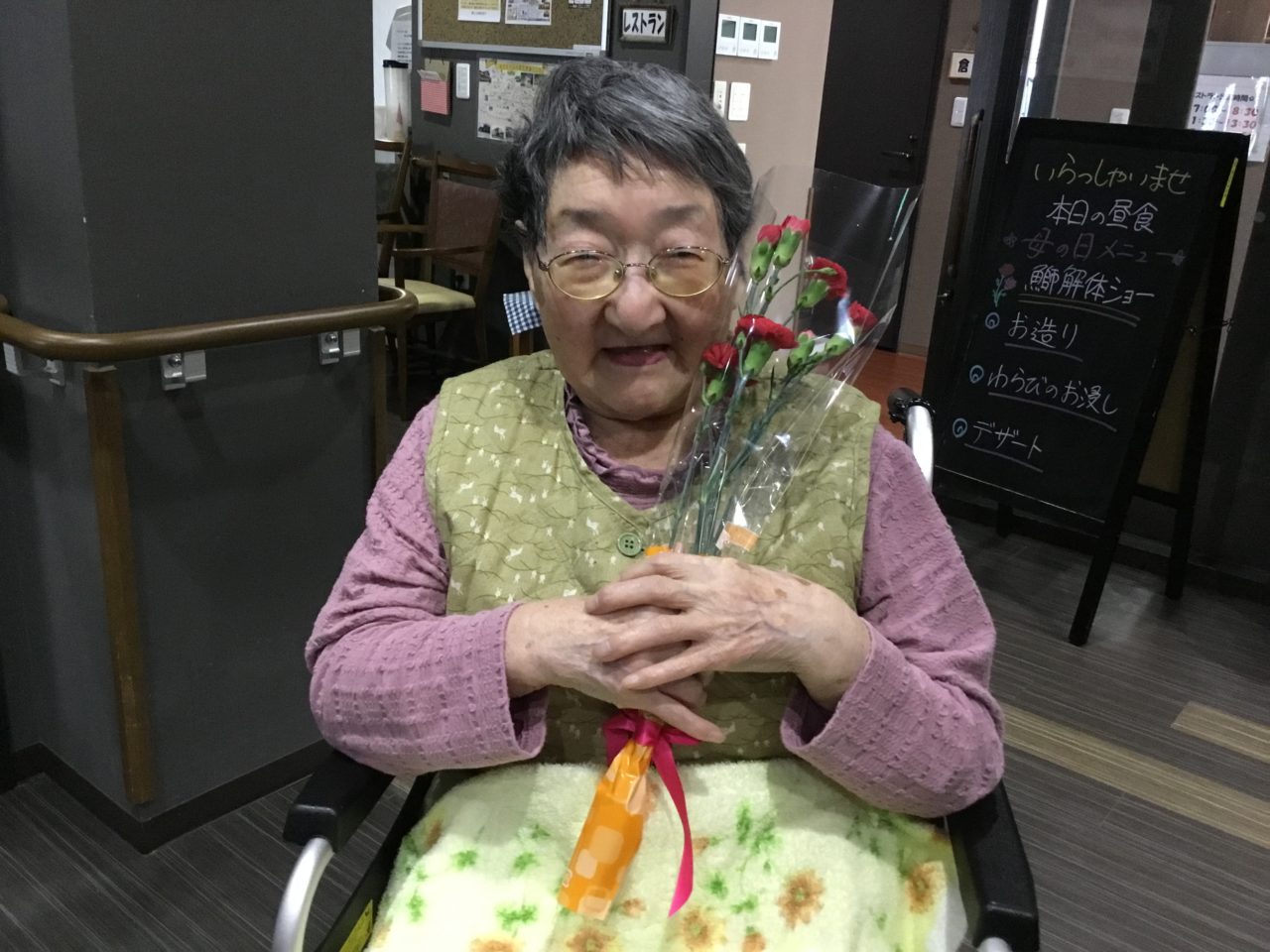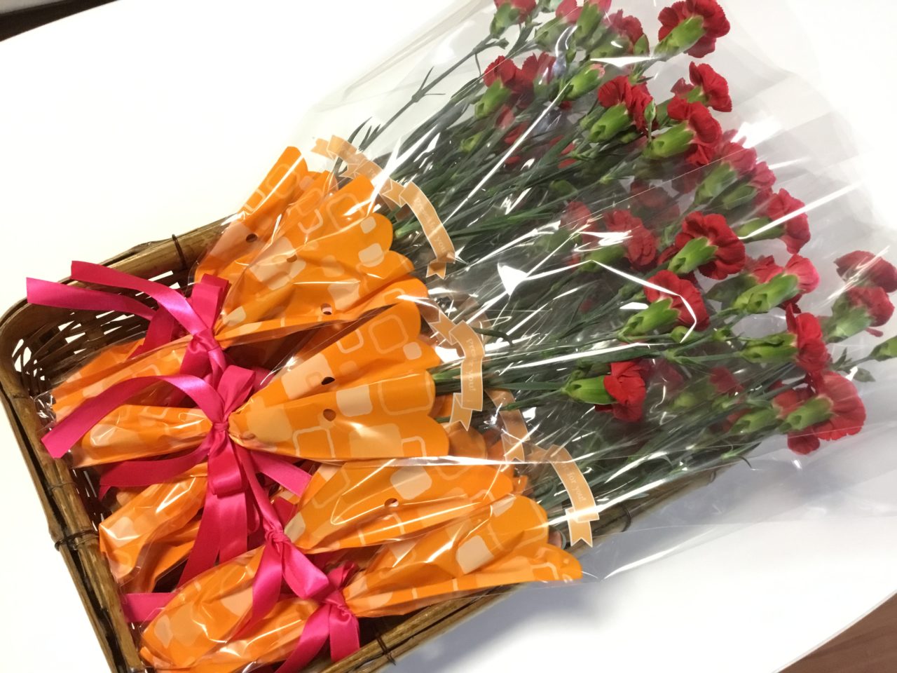 食後は女性の方にカーネーションをお配りし、日頃の感謝をお伝えしました?