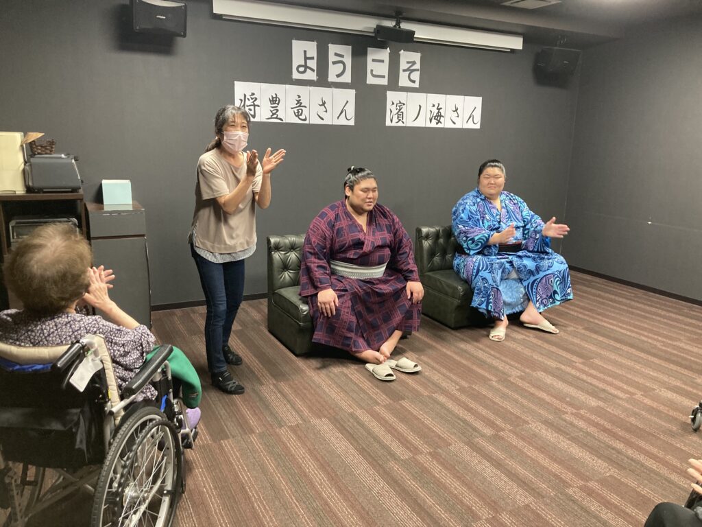 時津風部屋の将豊竜さんと濱の海さんがいらっしゃってくださるとの事で、皆さん、朝からワクワク、ソワソワ…??