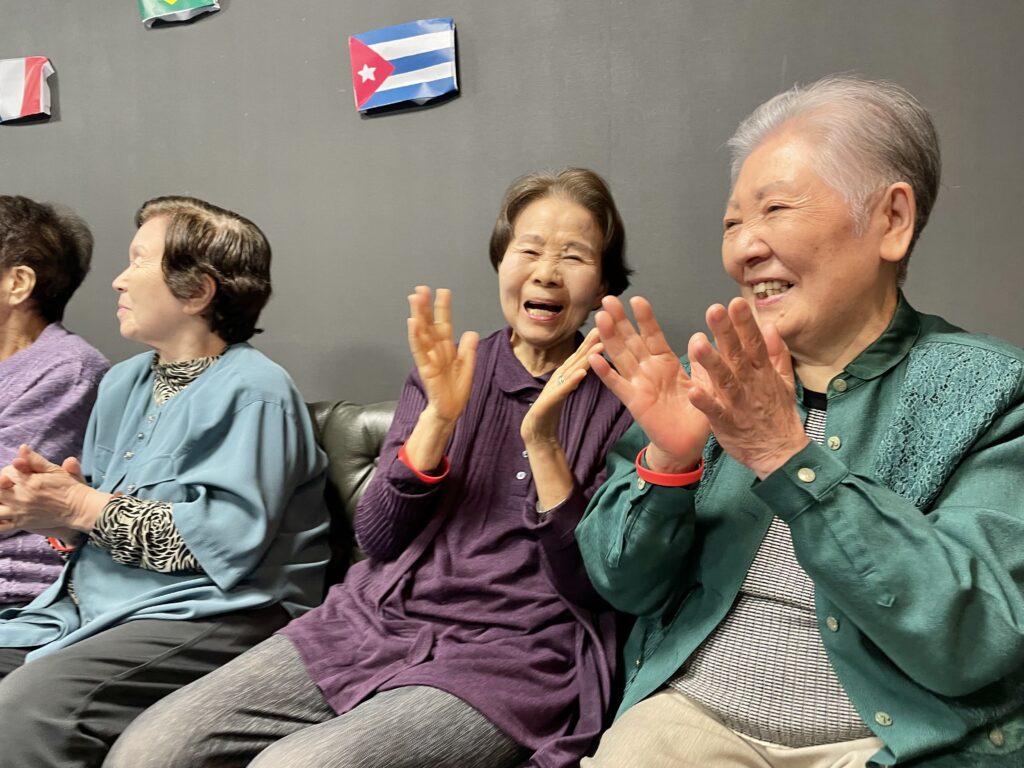 途中で、か奈パートナーのフラフープが壊れる!というアクシデントにラウンジは大爆笑に?