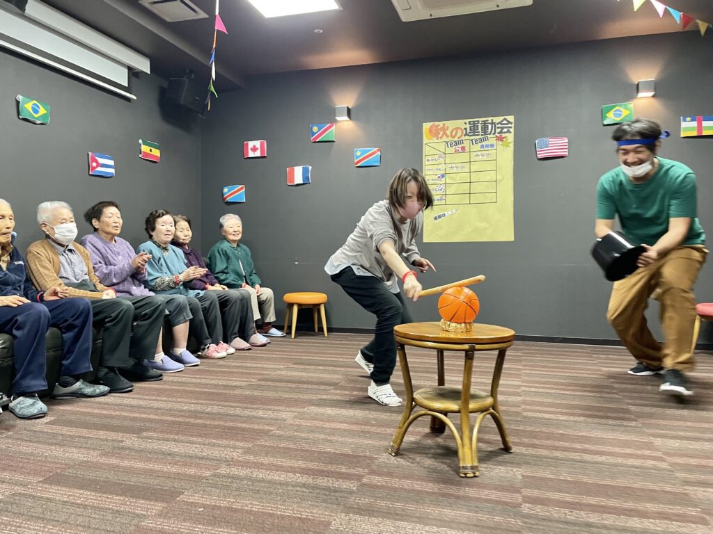 大爆笑のフラフープリレーのあとは『ボール叩き』です!!