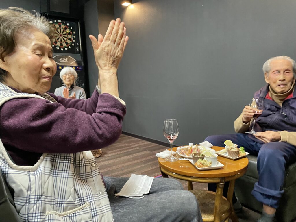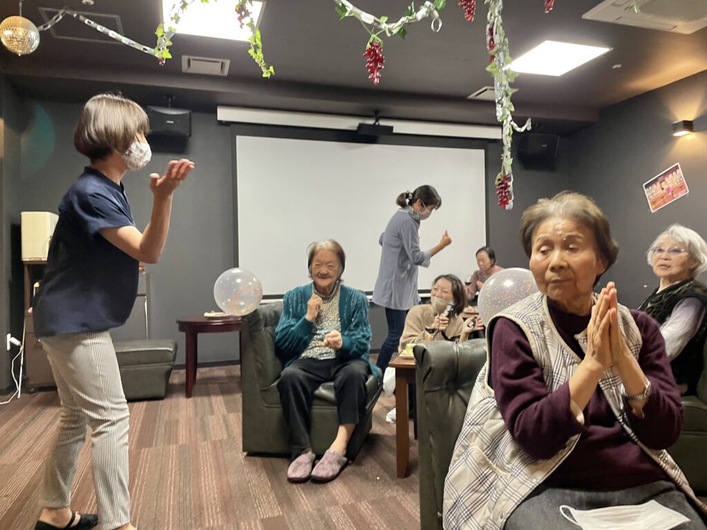 山田部長の歌声に合わせて踊り出し、ラウンジはさらに熱気に包まれていきます???