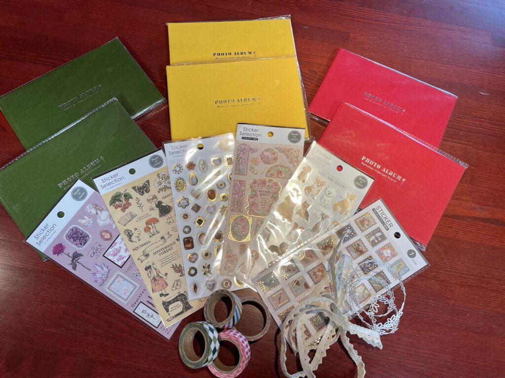 最初にアルバム作りの説明をさせて頂き、皆さんに好きな色のアルバム、飾り付けを選んで頂きました?