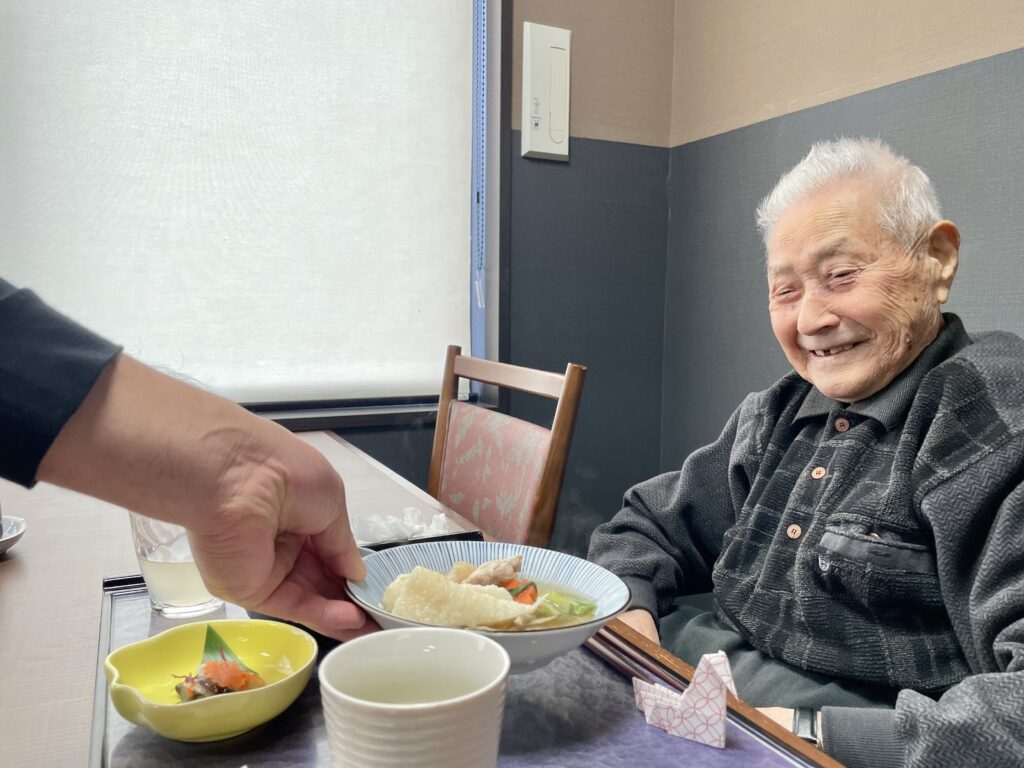 アツアツのきりたんぽ鍋をさっそく皆さんに召し上がって頂きます?