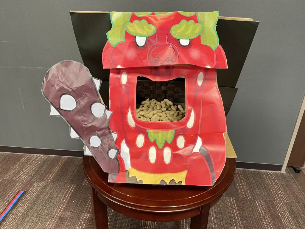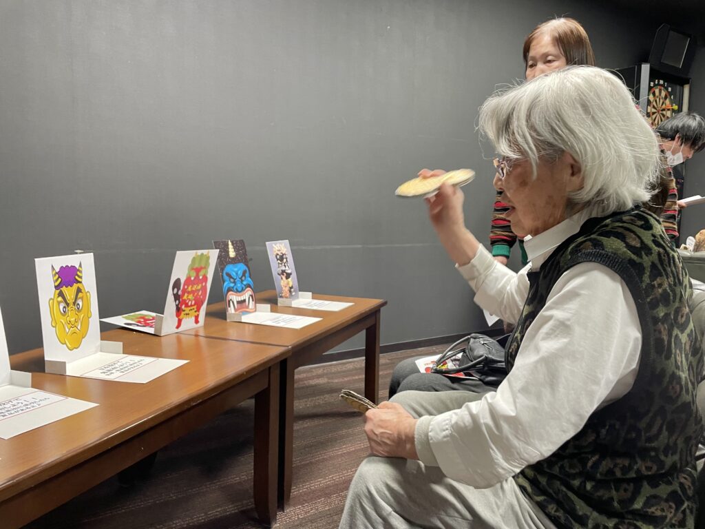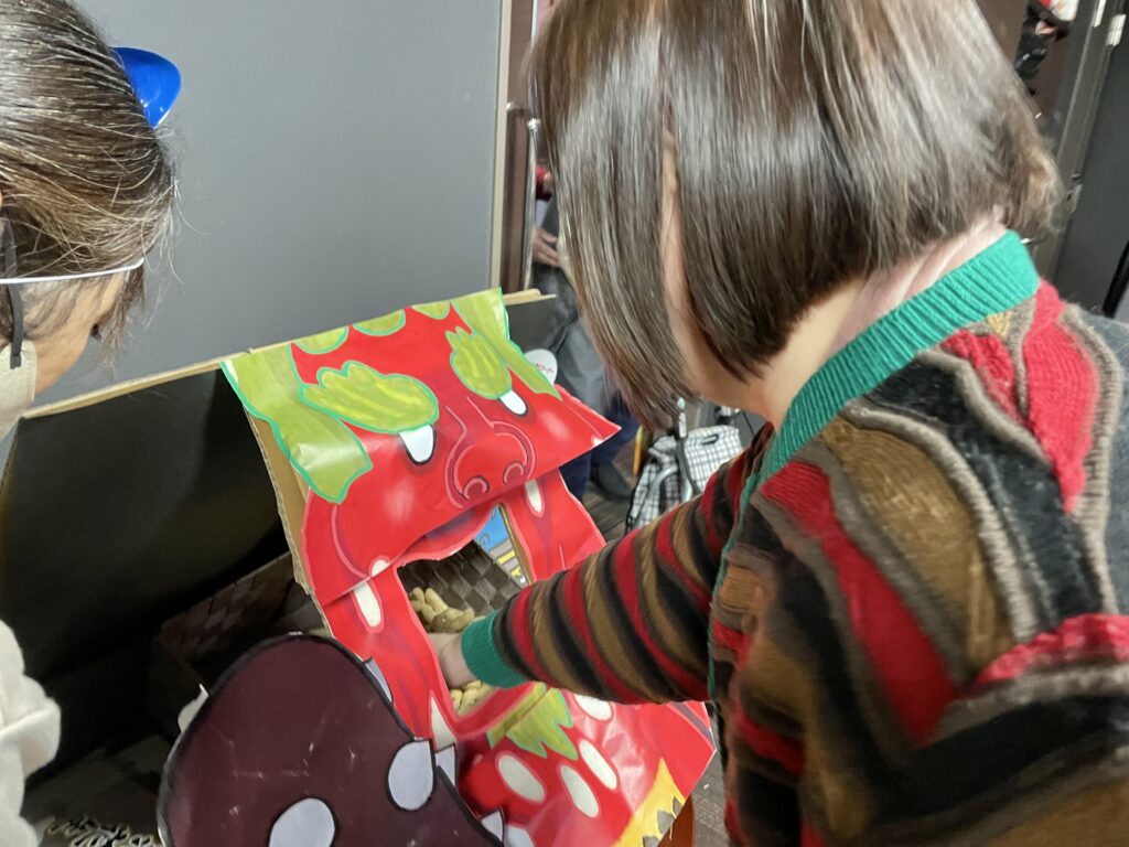 次は豆の掴み取りコーナーです❗️鬼が口を開けみなさんを待ち構えています?