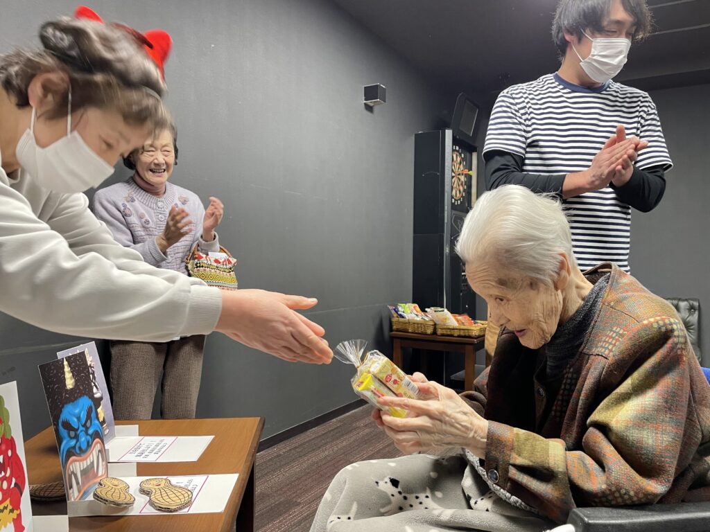 鬼に豆をまき邪気を払い、みなさんと沢山笑いあえた節分となりました?
