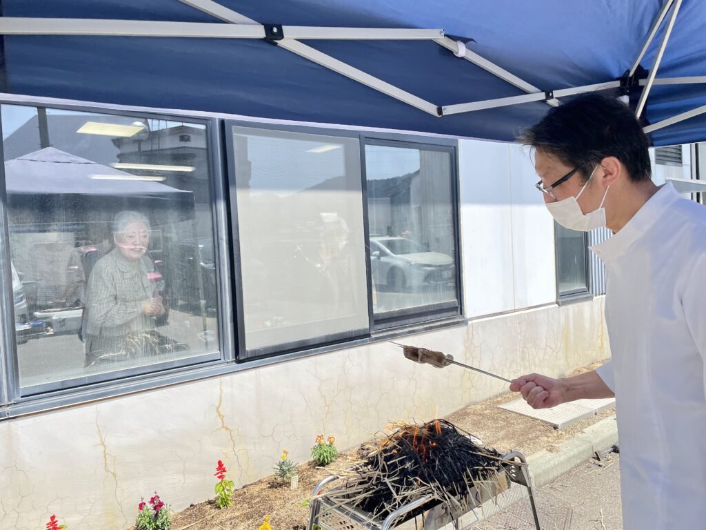 「藁で焼いて食べるの懐かしいな」とTさん。喜んでもらえて嬉しいです❤️