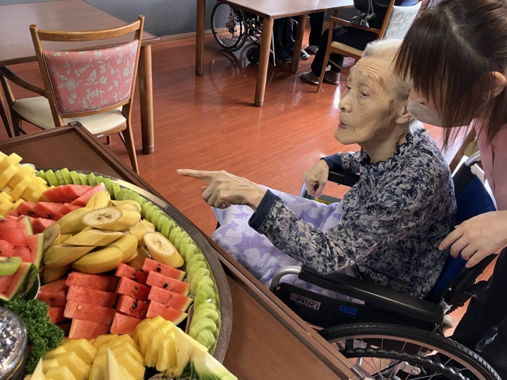 「わー、美味しそう‼️」「スイカは絶対食べる🍉」とたくさんのフルーツを前に歓声があがります❤️