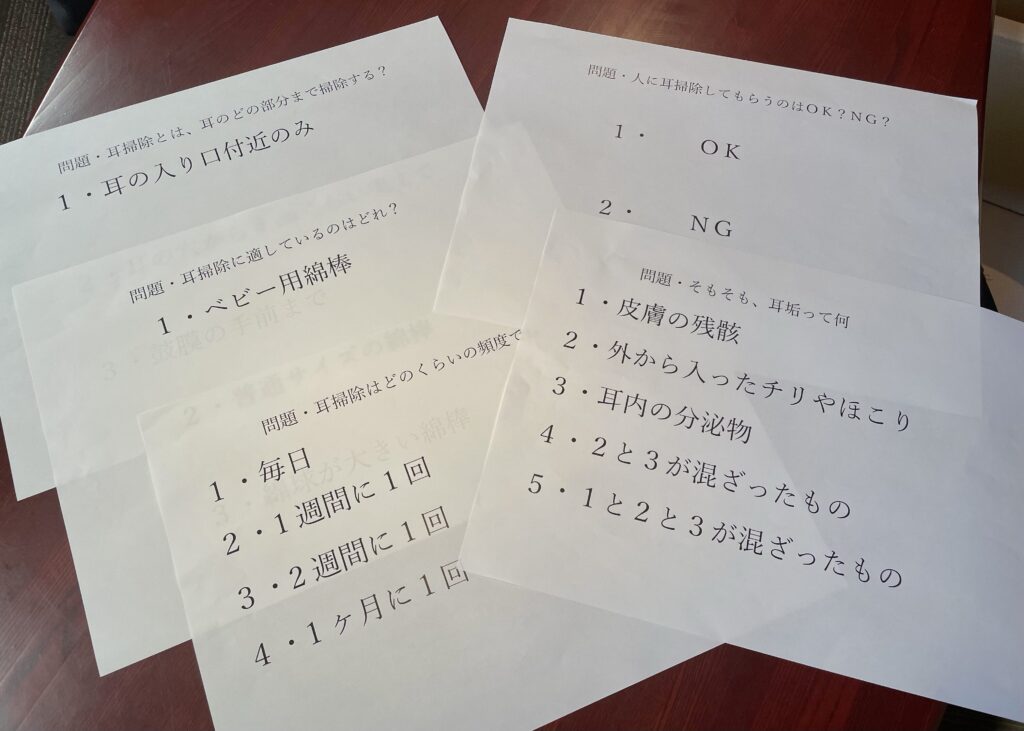 「耳掃除に適しているのはどれ?」という問題では、「指☝️」という珍回答も飛び出し、大盛り上がりのクイズとなりました😃(※正解はベビー綿棒です)
