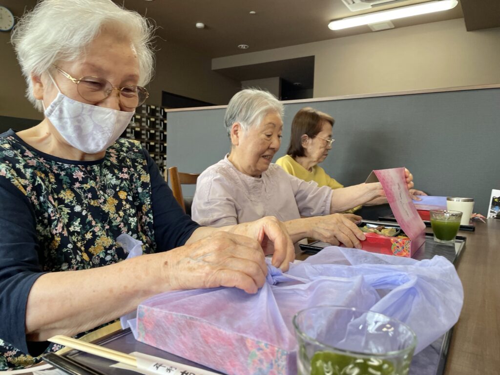「いつもの食事も美味しいけど、お弁当もいいわね」「湯沢の七夕弁当楽しみにしていたのよ〜」とたくさんの笑顔とたくさんの会話がいっぱいつまった昼食となりました❤️