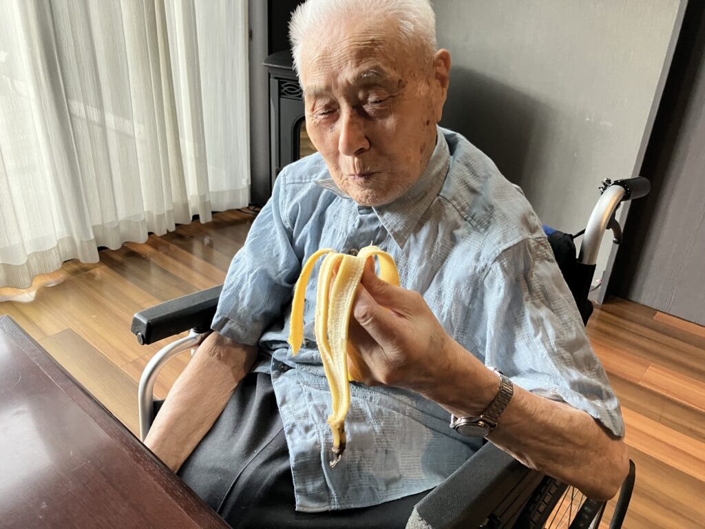 「バナナは大好きだ❤️」とさっそくガブリ🩷(笑)