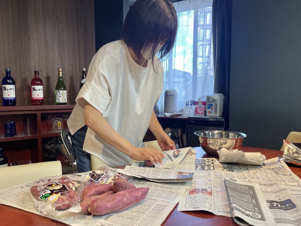 「おいしくな〜れ🫶」と、焼き芋の準備🍠
