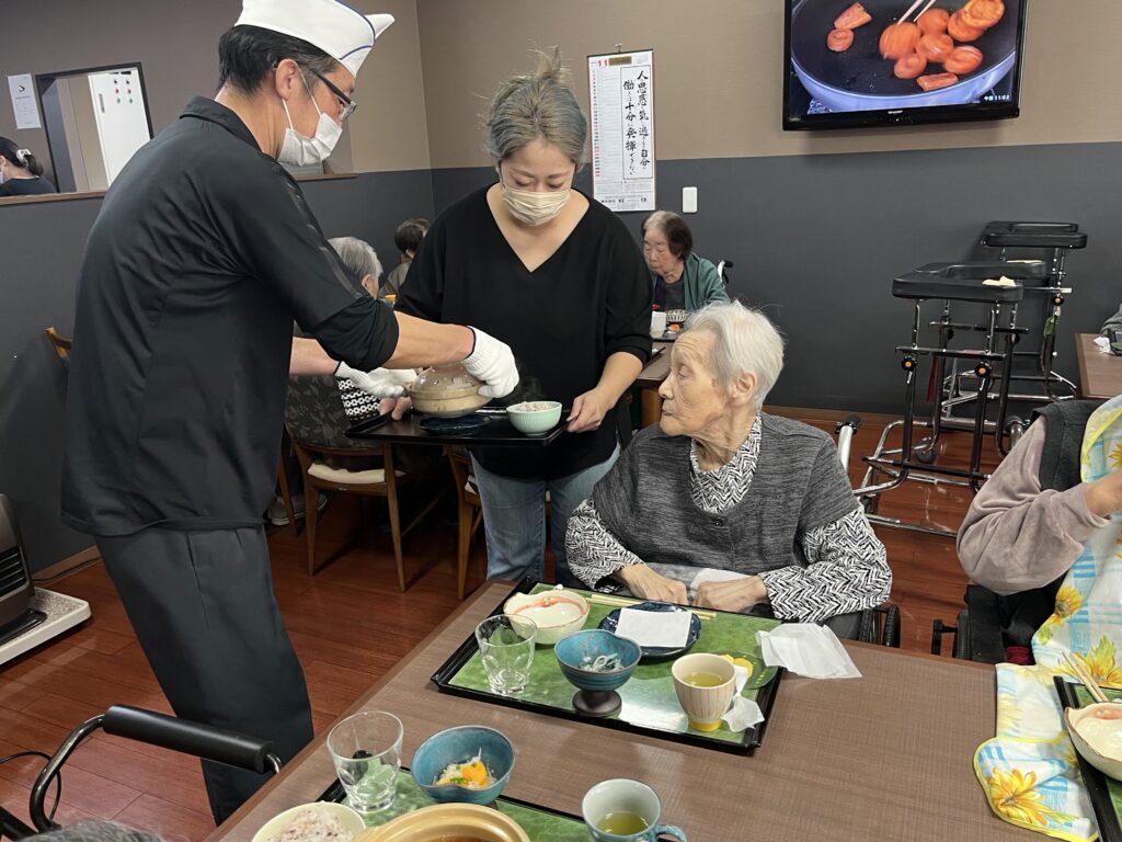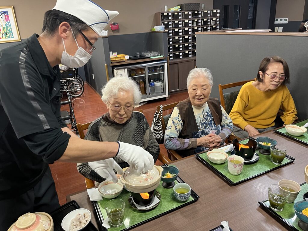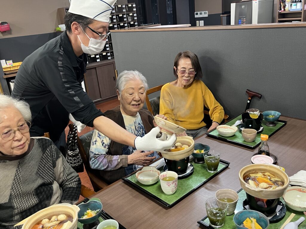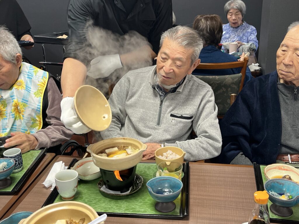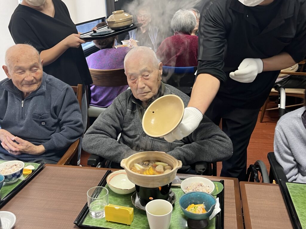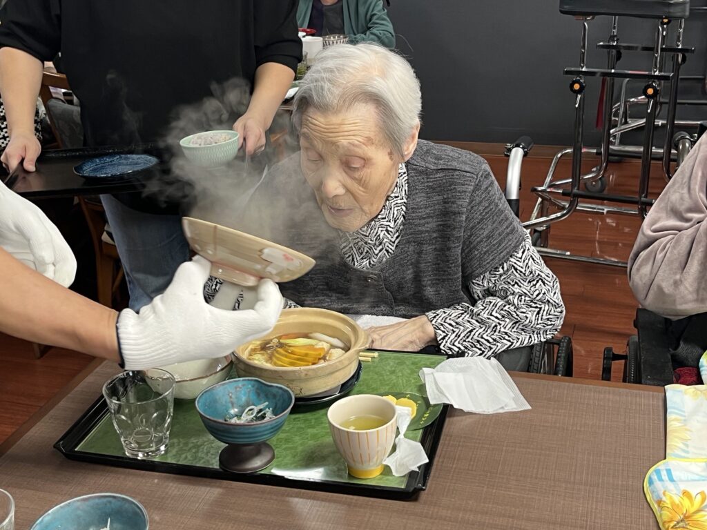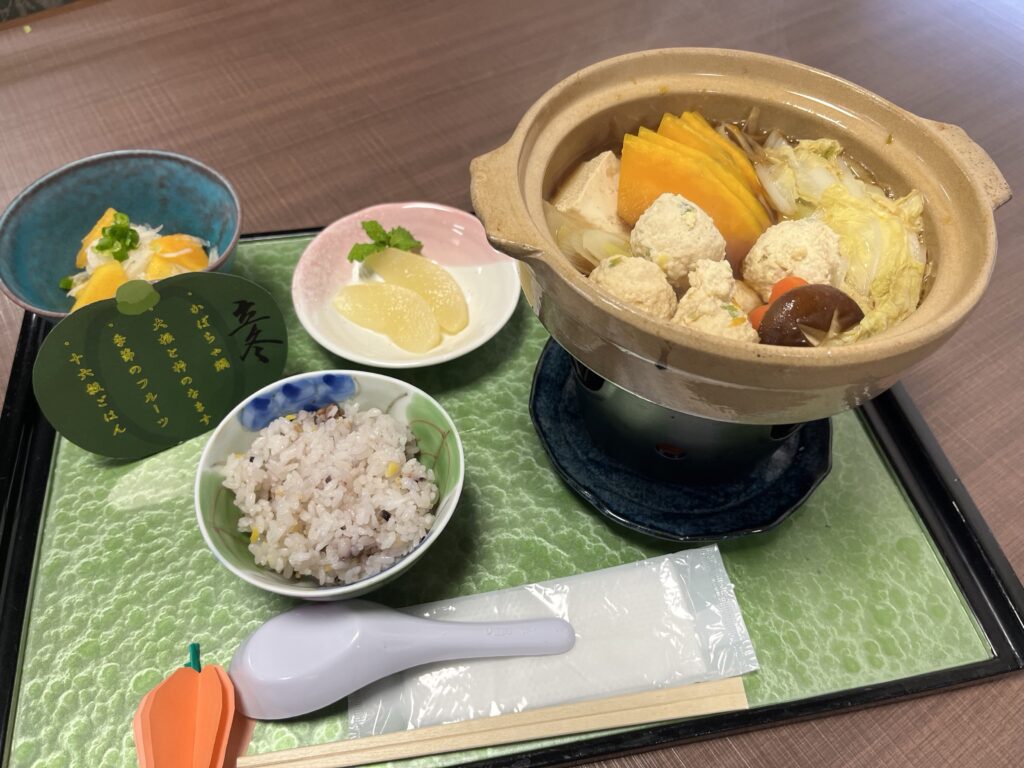 そこで本日の昼食は、かぼちゃ鍋で心も体も温まっていただき、季節の移り変わりを感じていただきます😄